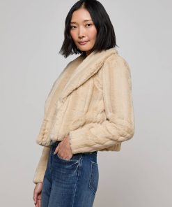 L’agence Women’s Elio Cropped Knit Blazer | Pale Khaki & Gold