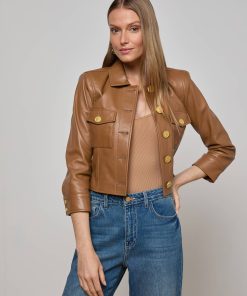 L’agence Women’s Larsen Vegan Leather Puffer Jacket | Carafe Brown & Valencia Leopard