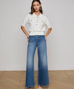 L’agence Women’s Masaki Cropped Sweater | Harbor Blue & Ivory & Nickel
