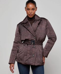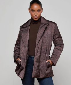 L’agence Women’s Willene Puffer Jacket | Brown Herringbone Print