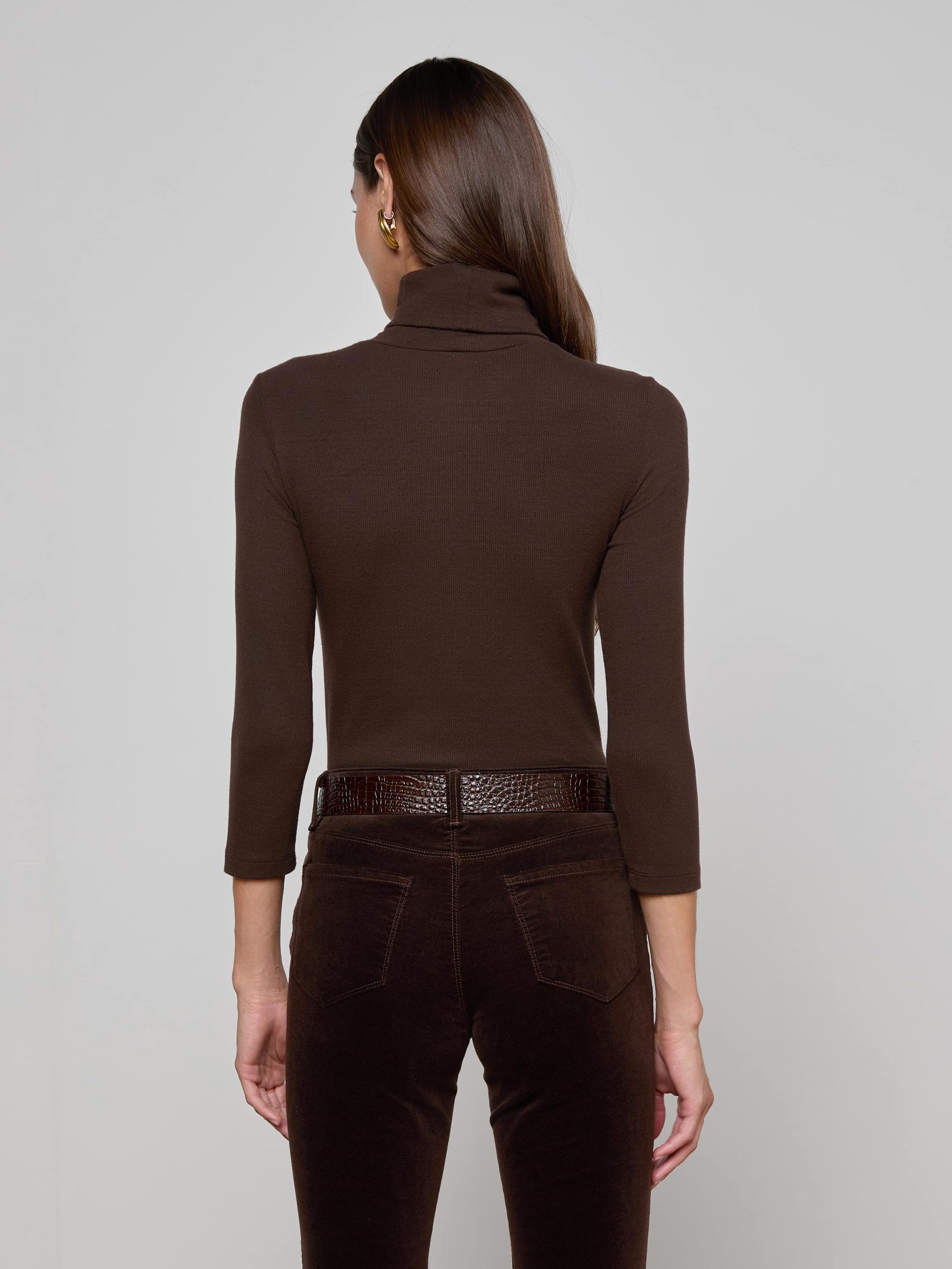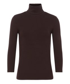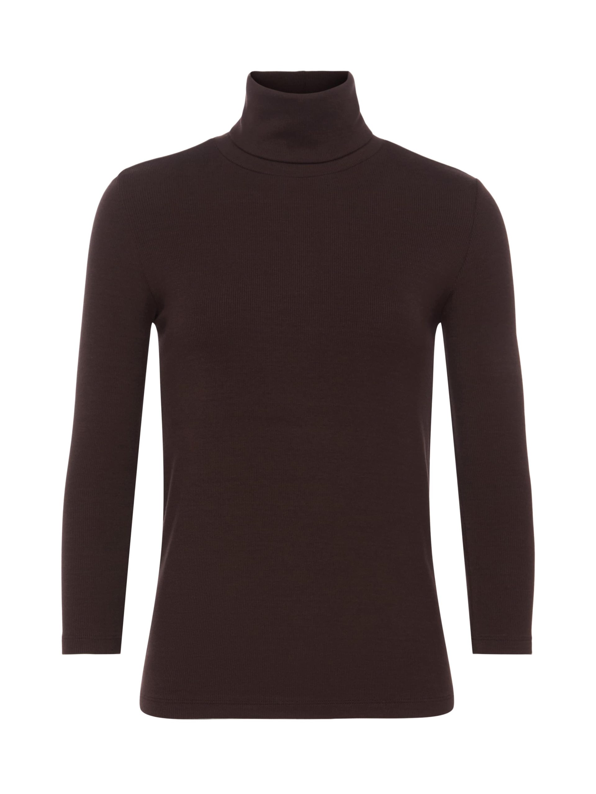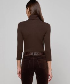 Our essential turtleneck top crafted from our super soft stretch modal and finished with three-quarter length sleeves. Perfect for layering or wearing alone. Now in coffee brown.