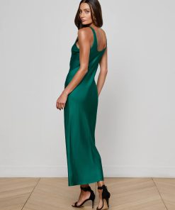 Minimal, elegant, and flattering, the Akiya dress is an evening essential. Lustrous, bias-cut satin drapes beautifully over the figure. Now back in bottle green.
