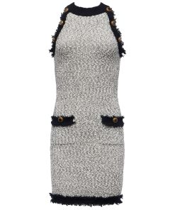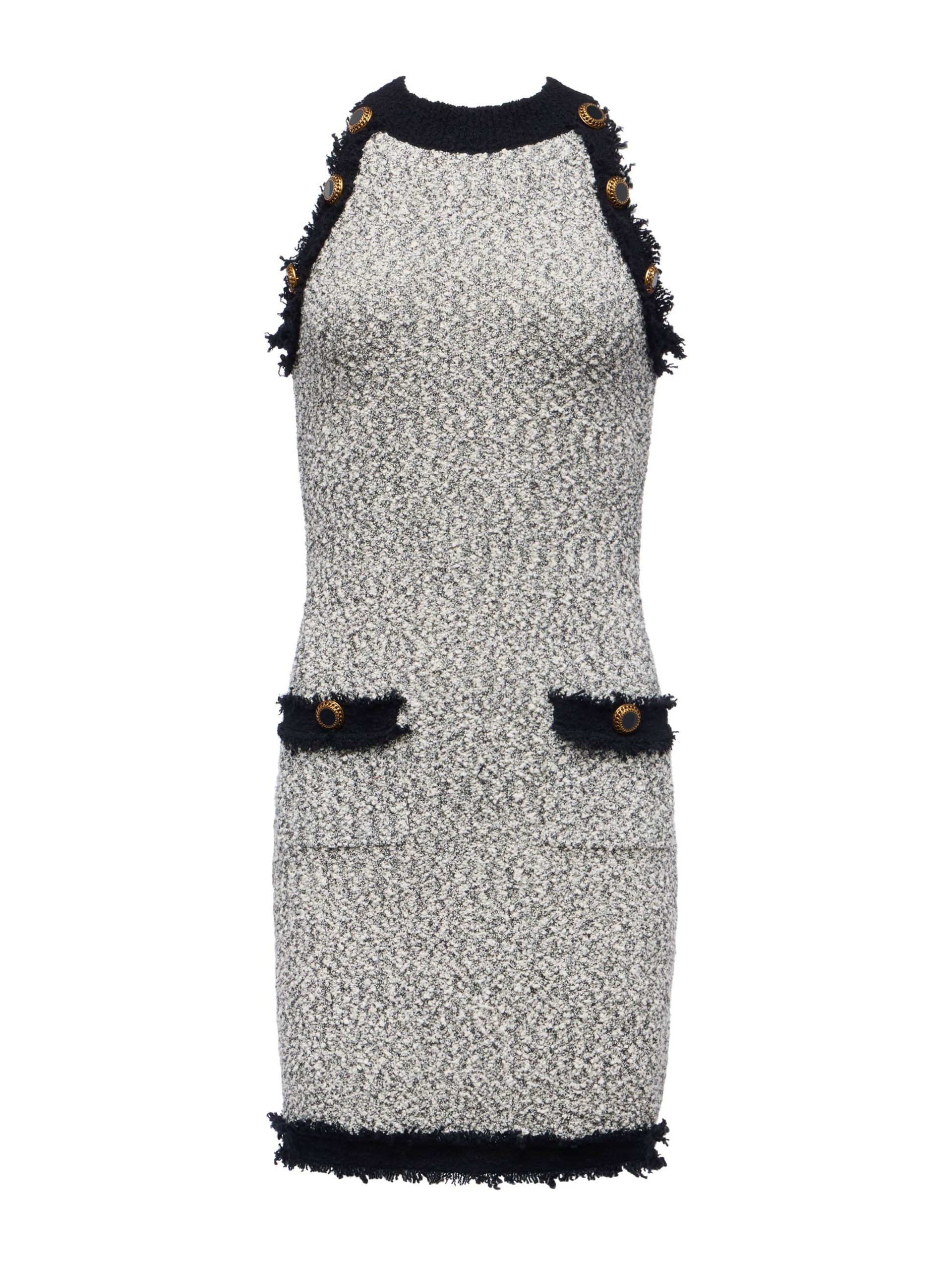 Striking the perfect balance between elegant and cool, the Alanna shift dress is crafted from a richly textured knit that exudes refined style. The prim silhouette is offset by raw-edge detailing, gold-rimmed buttons, and a sleek racer-back silhouette. An unexpected take on ladylike dressing.