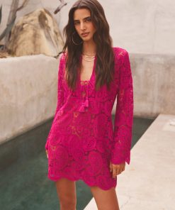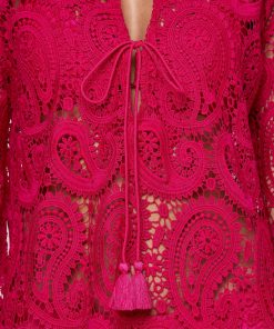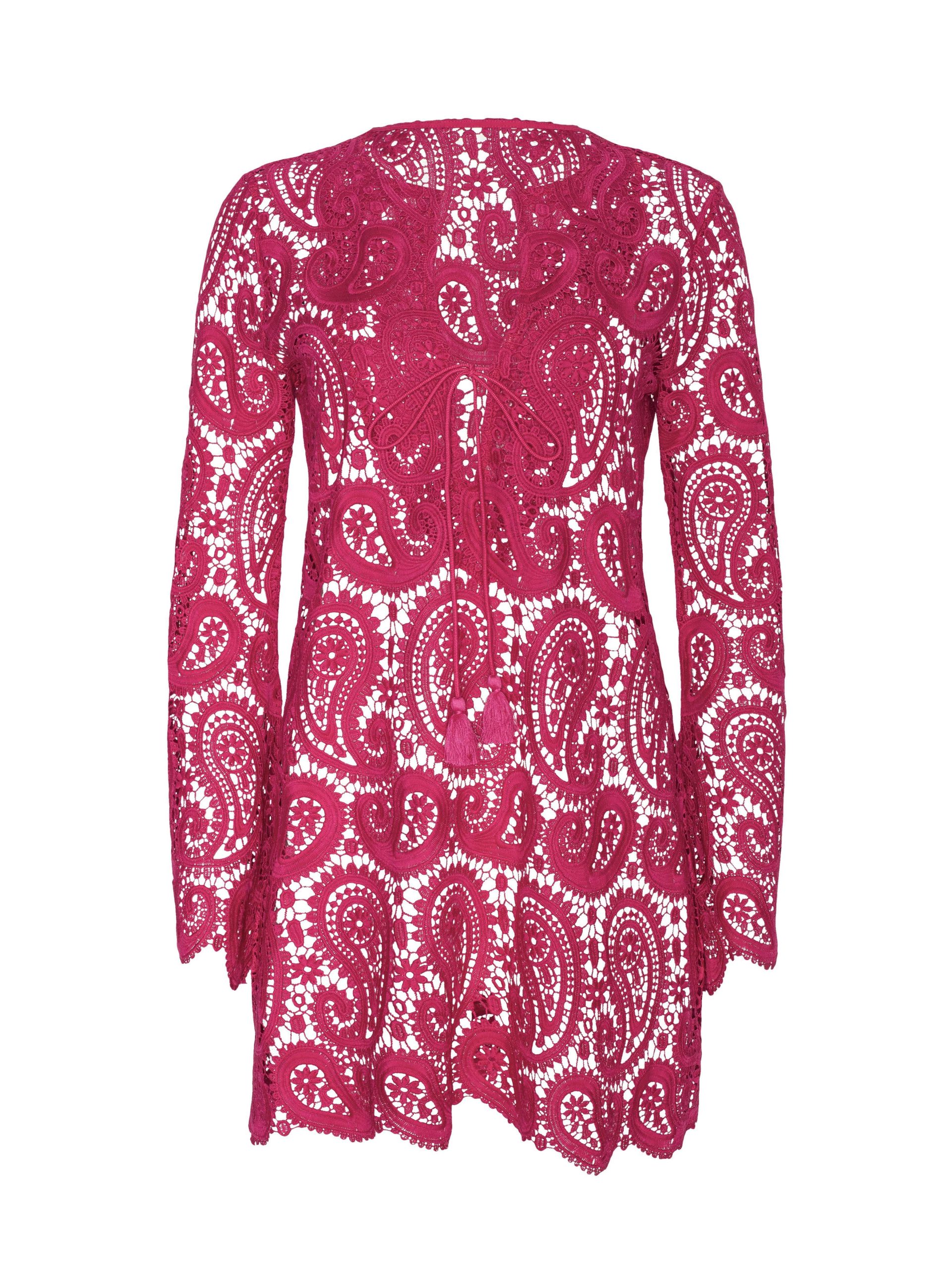 The perfect little cover-up dress, the Ansley is updated with intricate paisley lace, flared sleeves, and a playful tassel tie—effortlessly chic from beach to brunch.