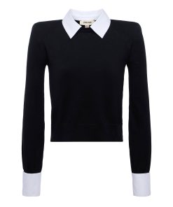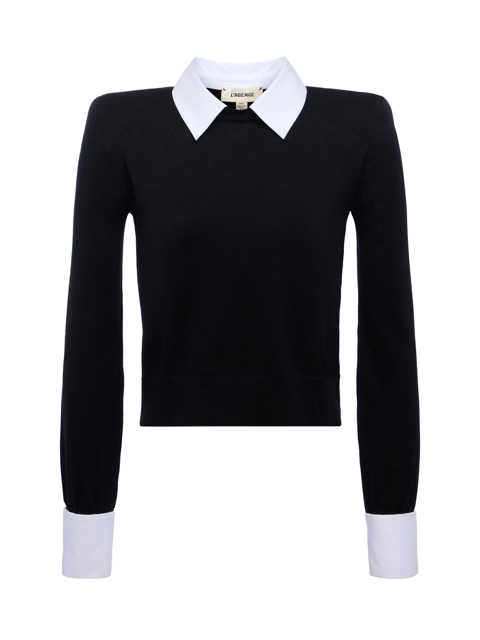 A closet must-have, the April is a pullover featuring a crisp poplin collar and cuffs, giving the illusion of layered shirting. Crafted from a soft knit, it’s a polished essential with timeless appeal.