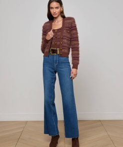 Soft and striking, the Ariadne is woven with a variety of eyelash yarns and mixed stitches for textural dimension. Finished with vintage-inspired buttons. Wear the Ariadne as a top or layer it over the coordinating Galene tank.