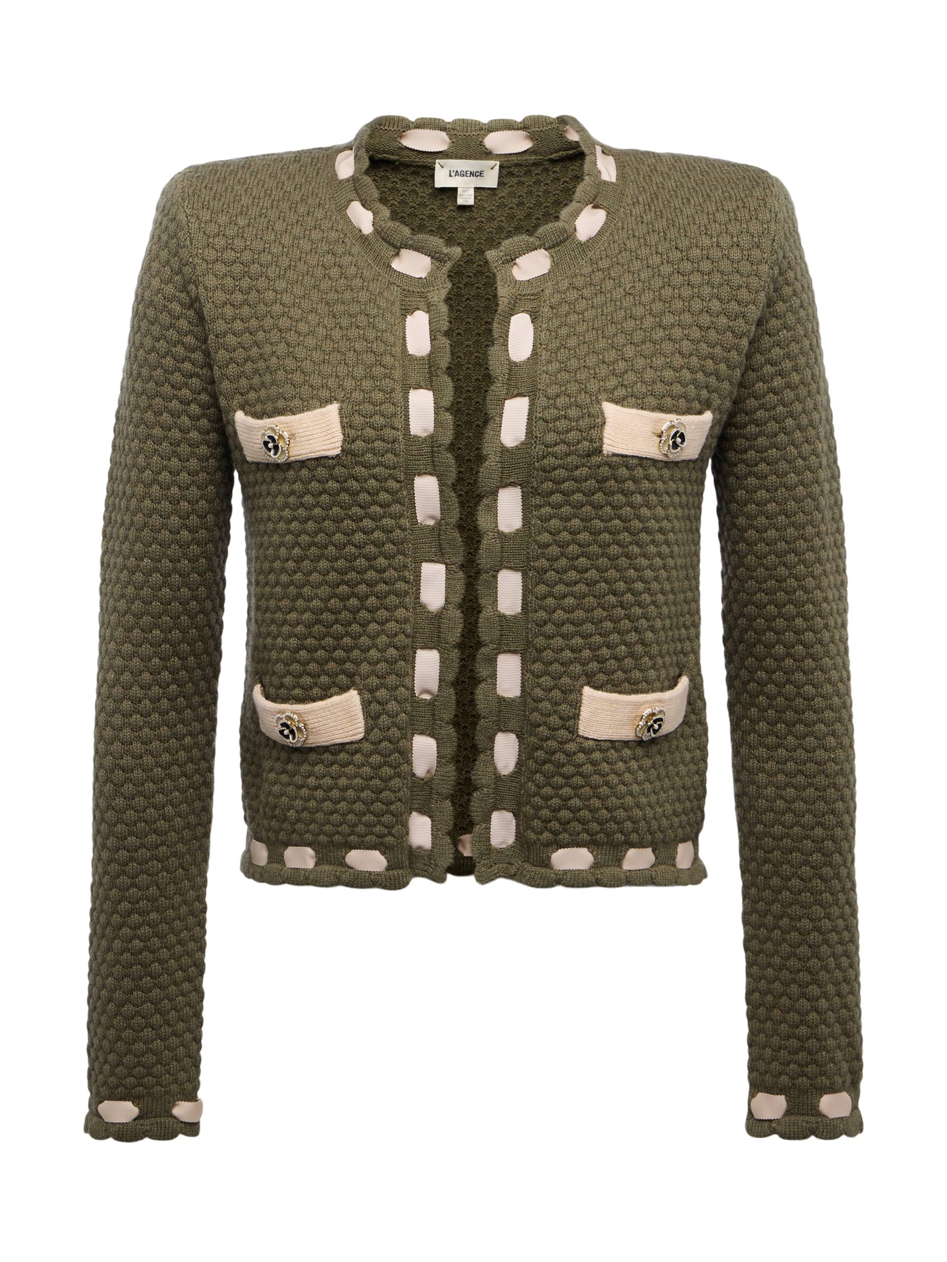 Parisian-inspired elegance at its finest. The Astor cardigan is back in olive green.