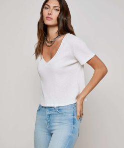 This lightweight cotton tee features a relaxed fit and classic V-neckline. It’s the perfect little vintage-inspired tee—effortless and versatile.