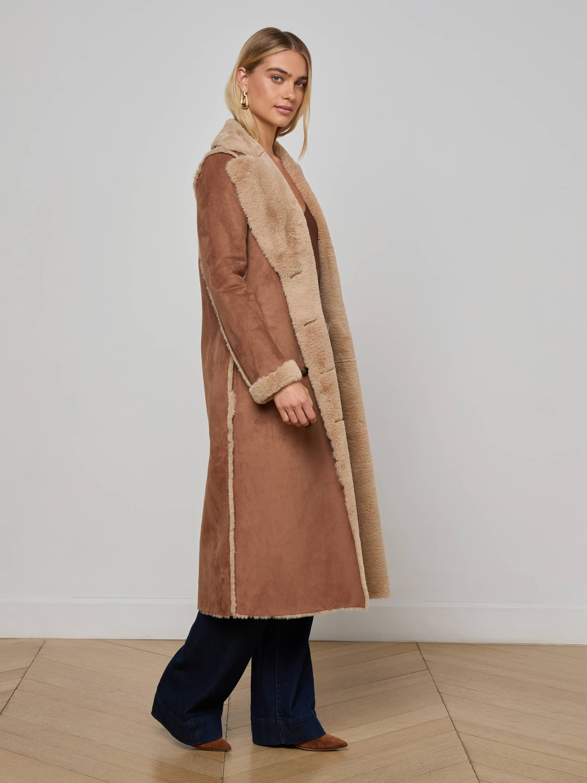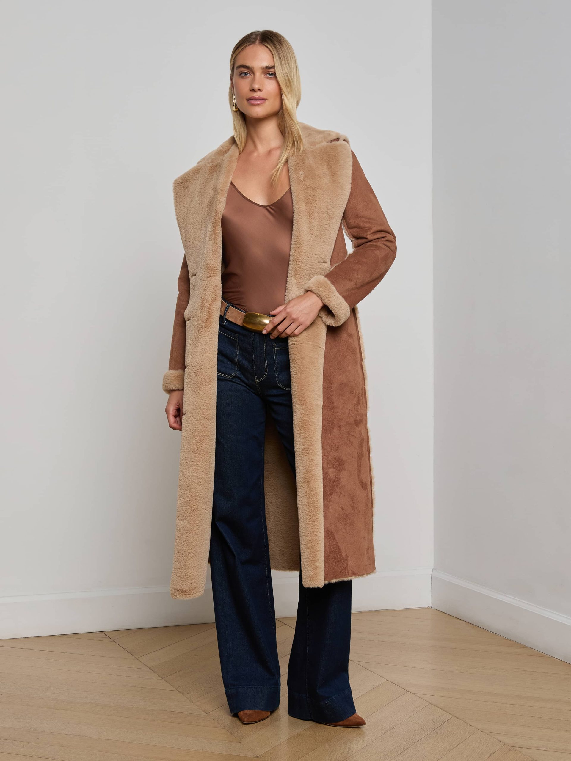 L’agence Women’s Citron Faux Fur Maxi Coat | Sepia Brown & Light Almond