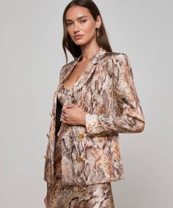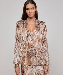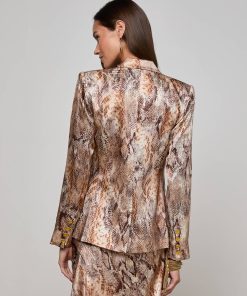 The Colin blazer in snake print debuted at the Fall ‘25 NYFW presentation. Subtle feminine shaping balances the crisp tailored details of this silk double-breasted blazer.
