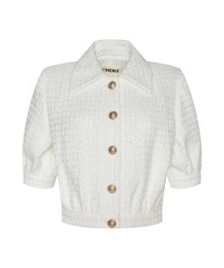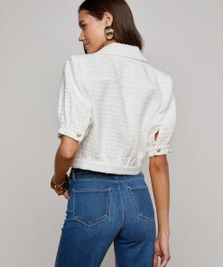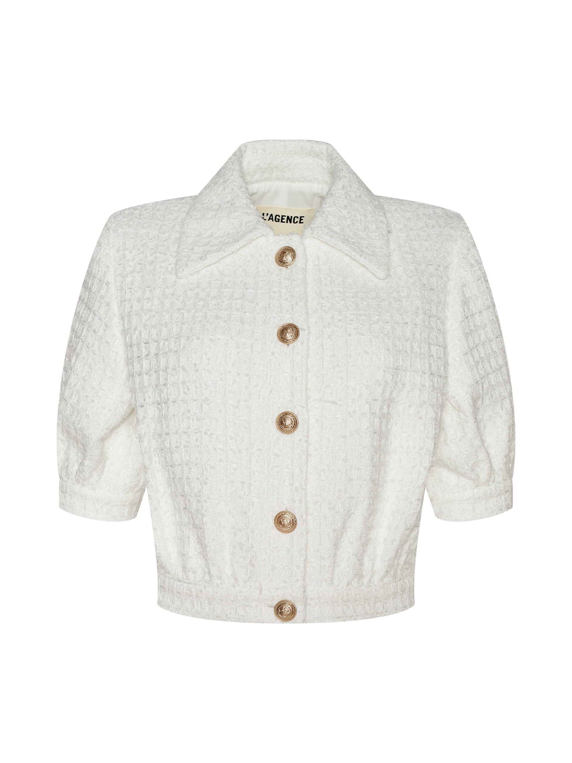 With an ultra-feminine cropped silhouette and puff sleeve, our cropped Cove does double duty as a chic jacket or top. Now in white.