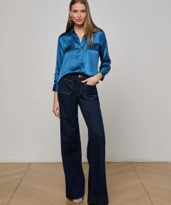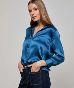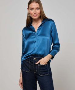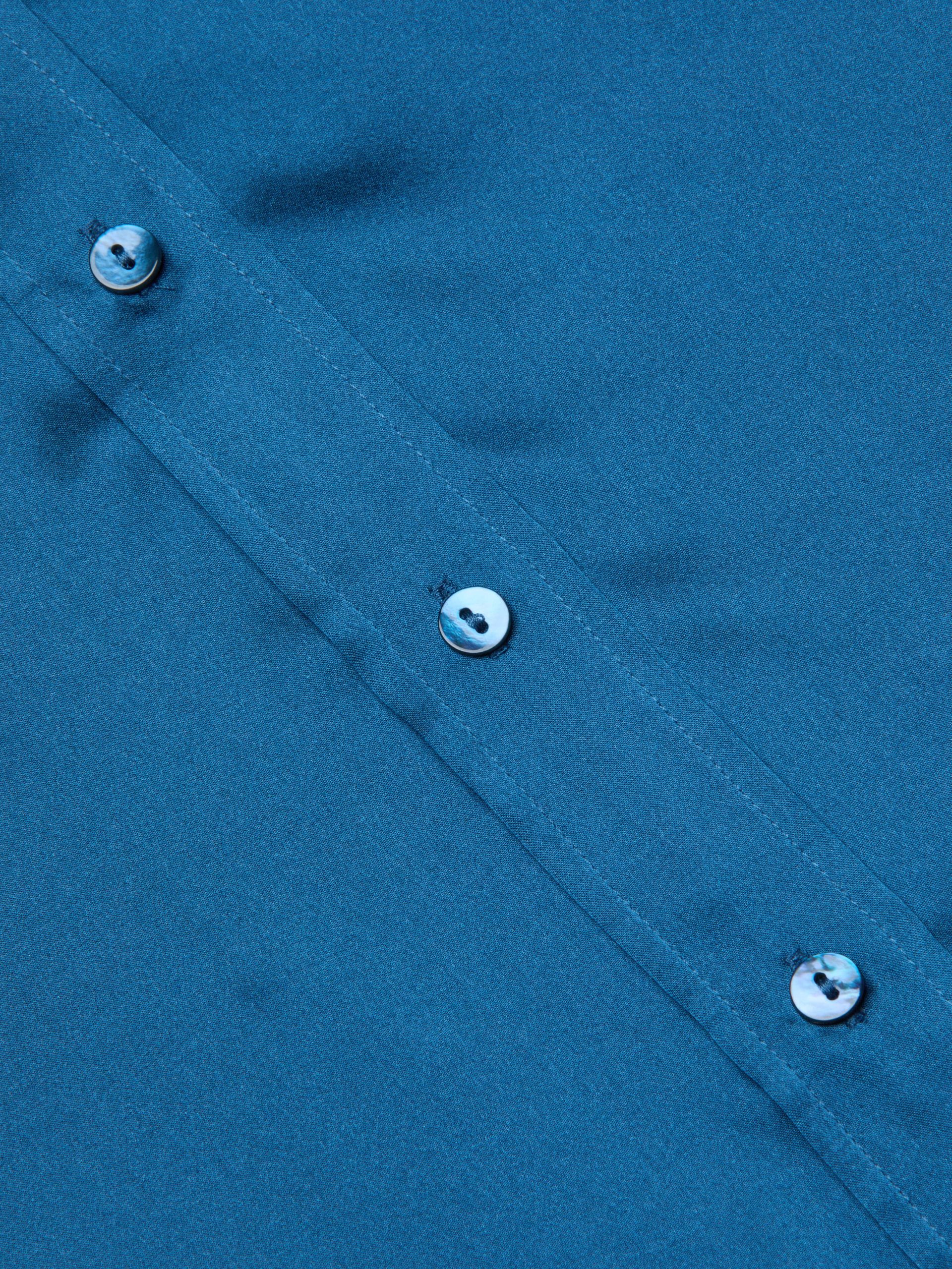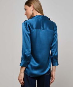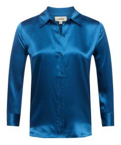 Meet the iconic silk button-down that belongs in every wardrobe. Our signature three-quarter sleeve shirt is back in stone blue.