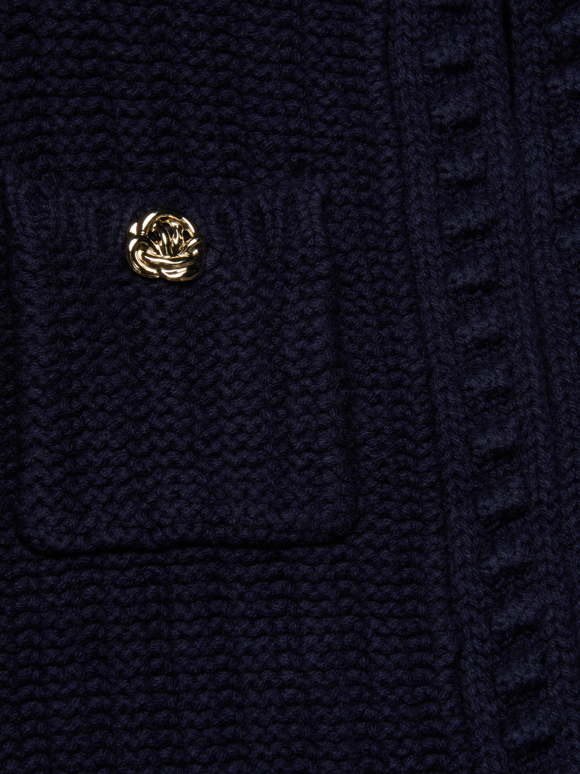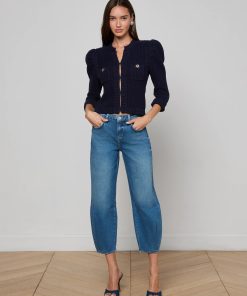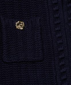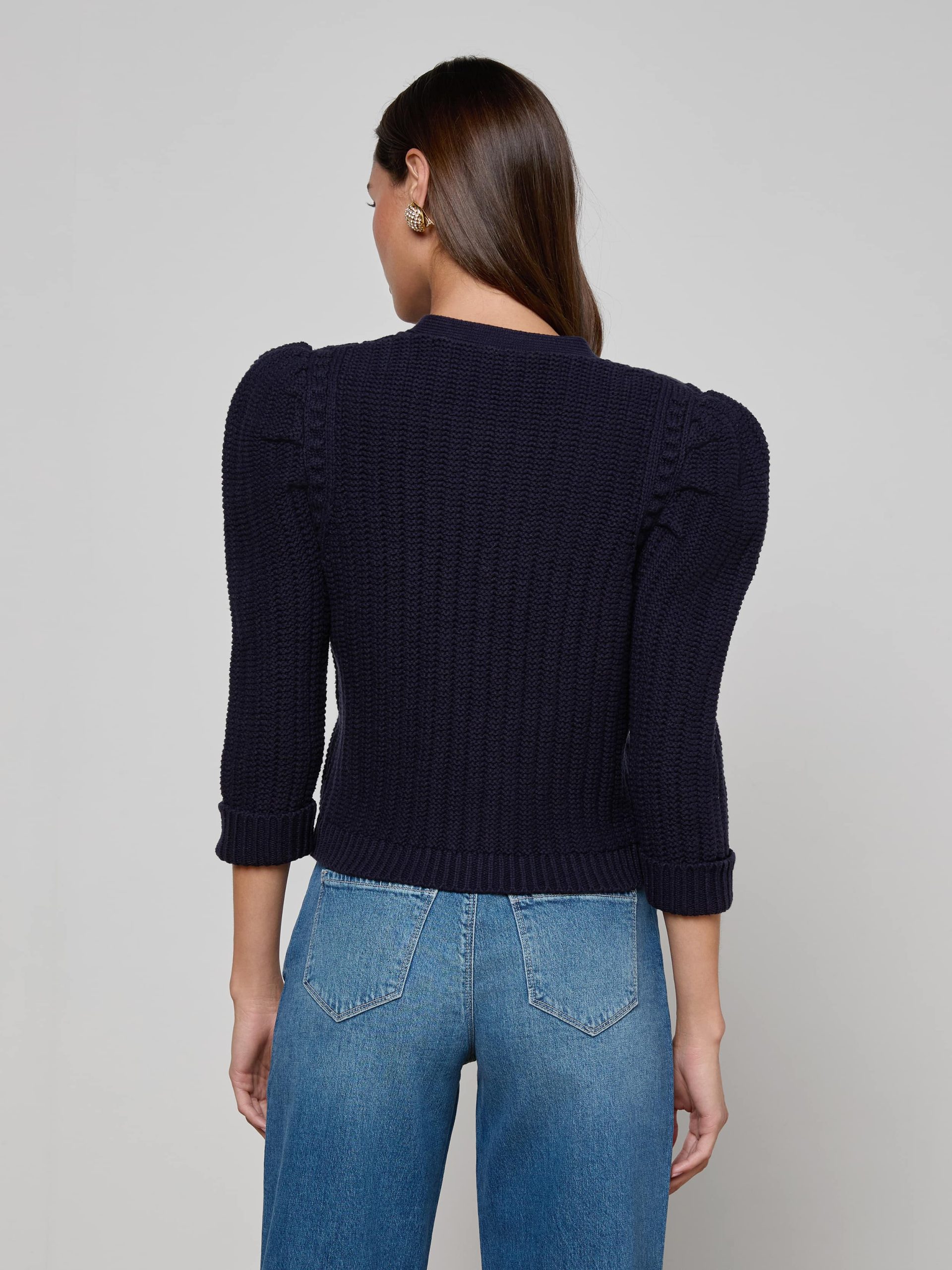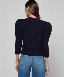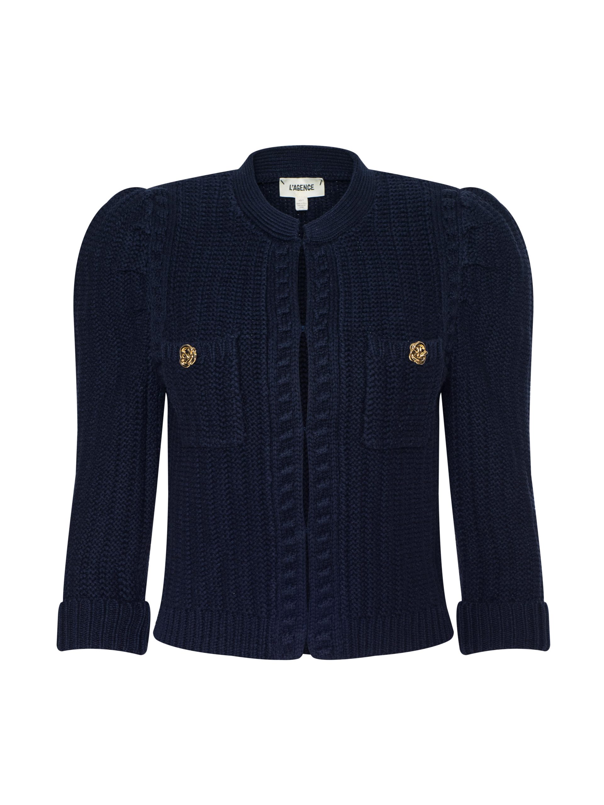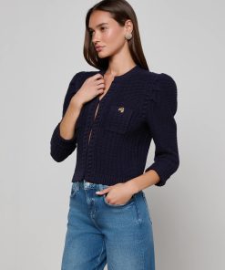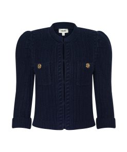 Texture and shape define the Delli cardigan, now in midnight blue. Constructed with a structured knit and puff sleeves, this cardigan can be worn as top or second layer all season, every season.