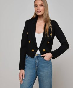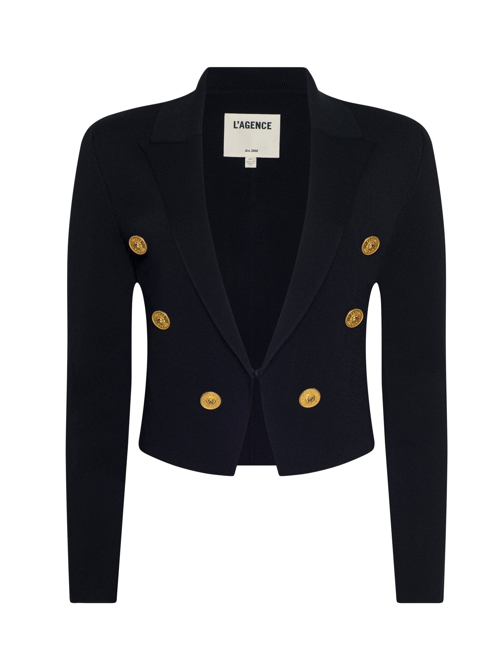 L’agence Women’s Elio Cropped Knit Blazer | Black & Gold