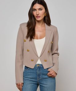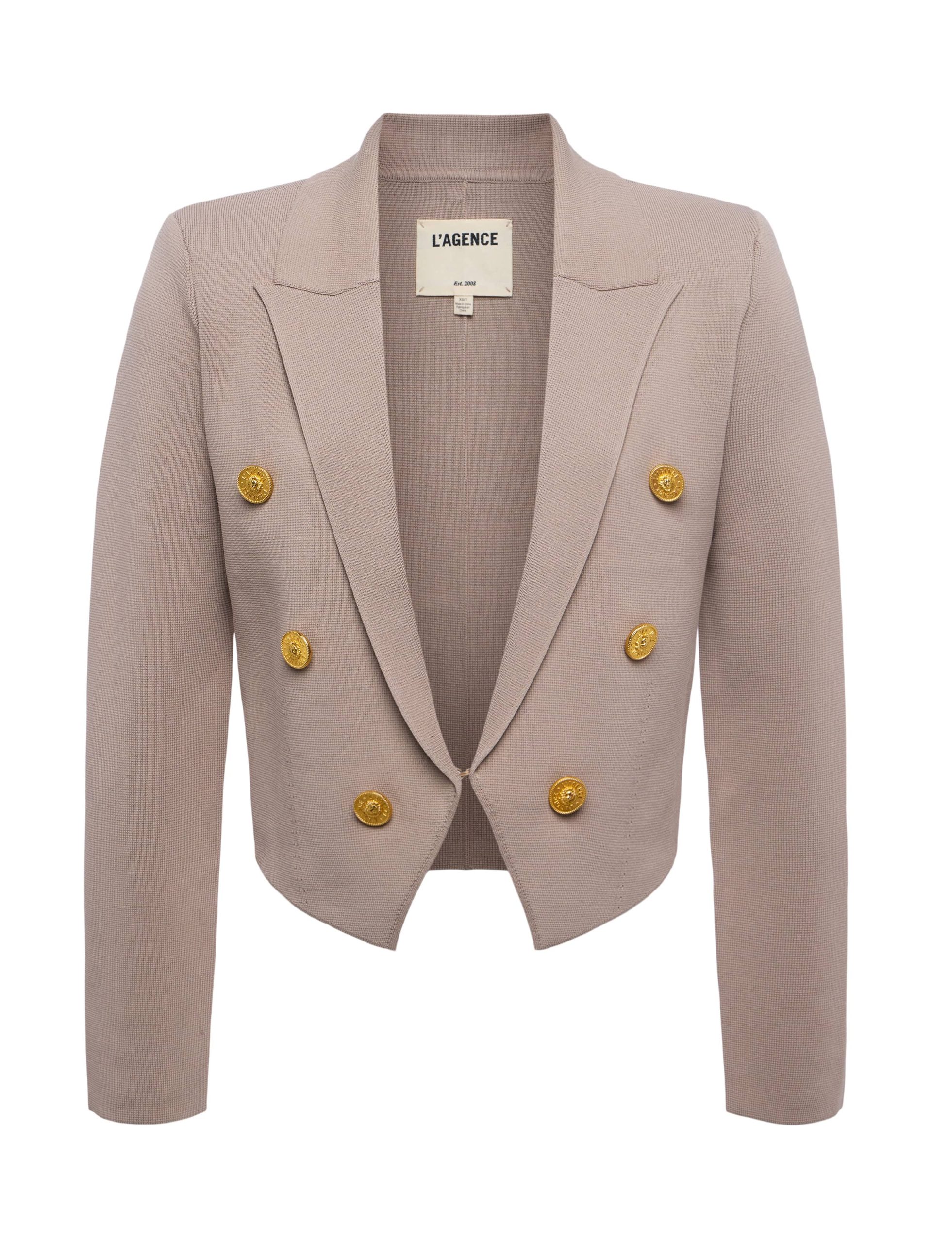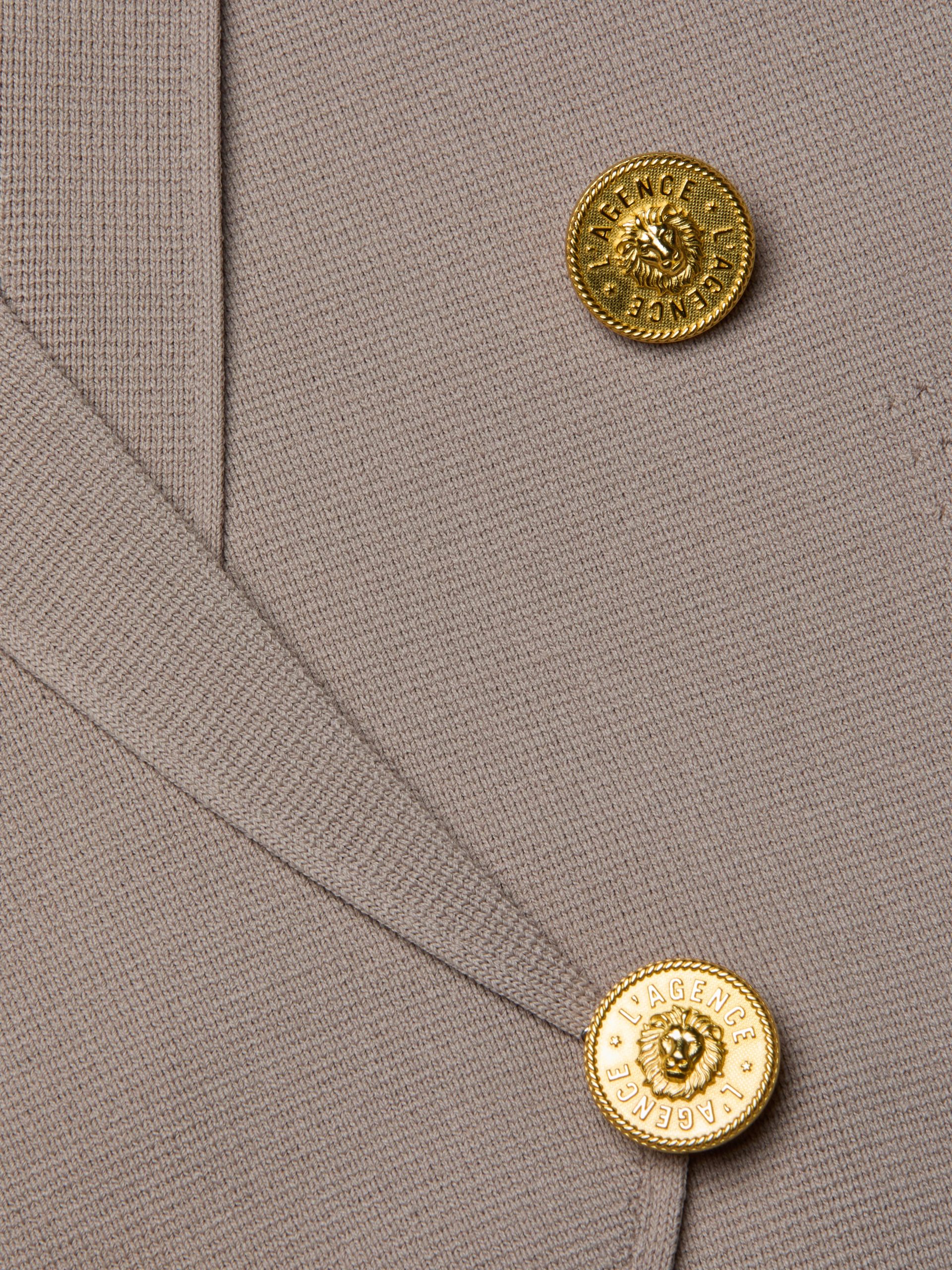 Instant polish, with comfort. The Elio is a cropped knit blazer that blends structure with softness. Finished with gold buttons and a curved hem, it’s your answer to looking tailored yet relaxed.