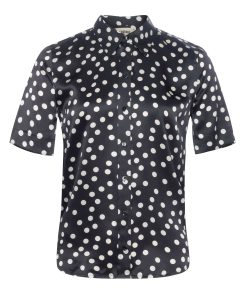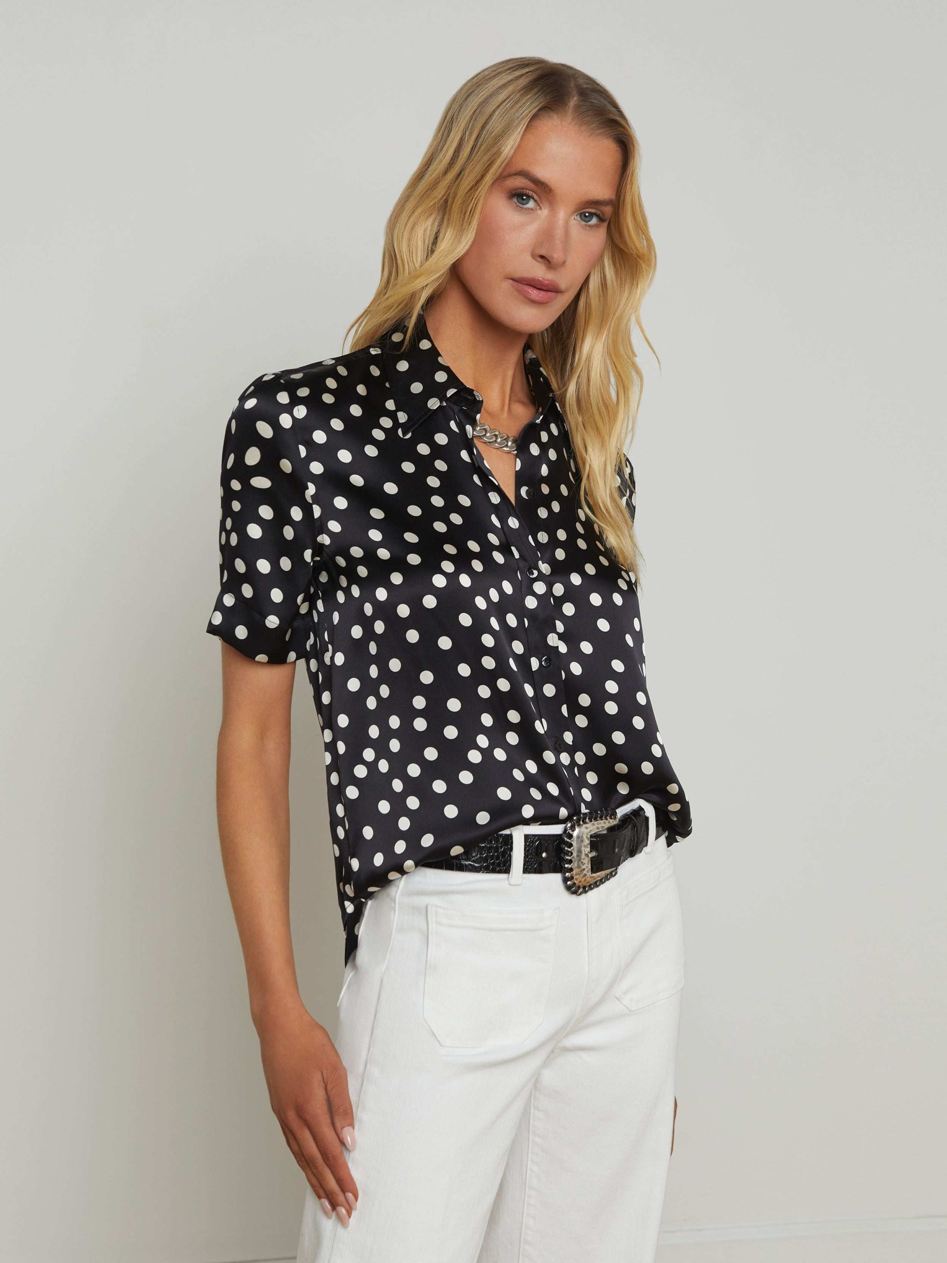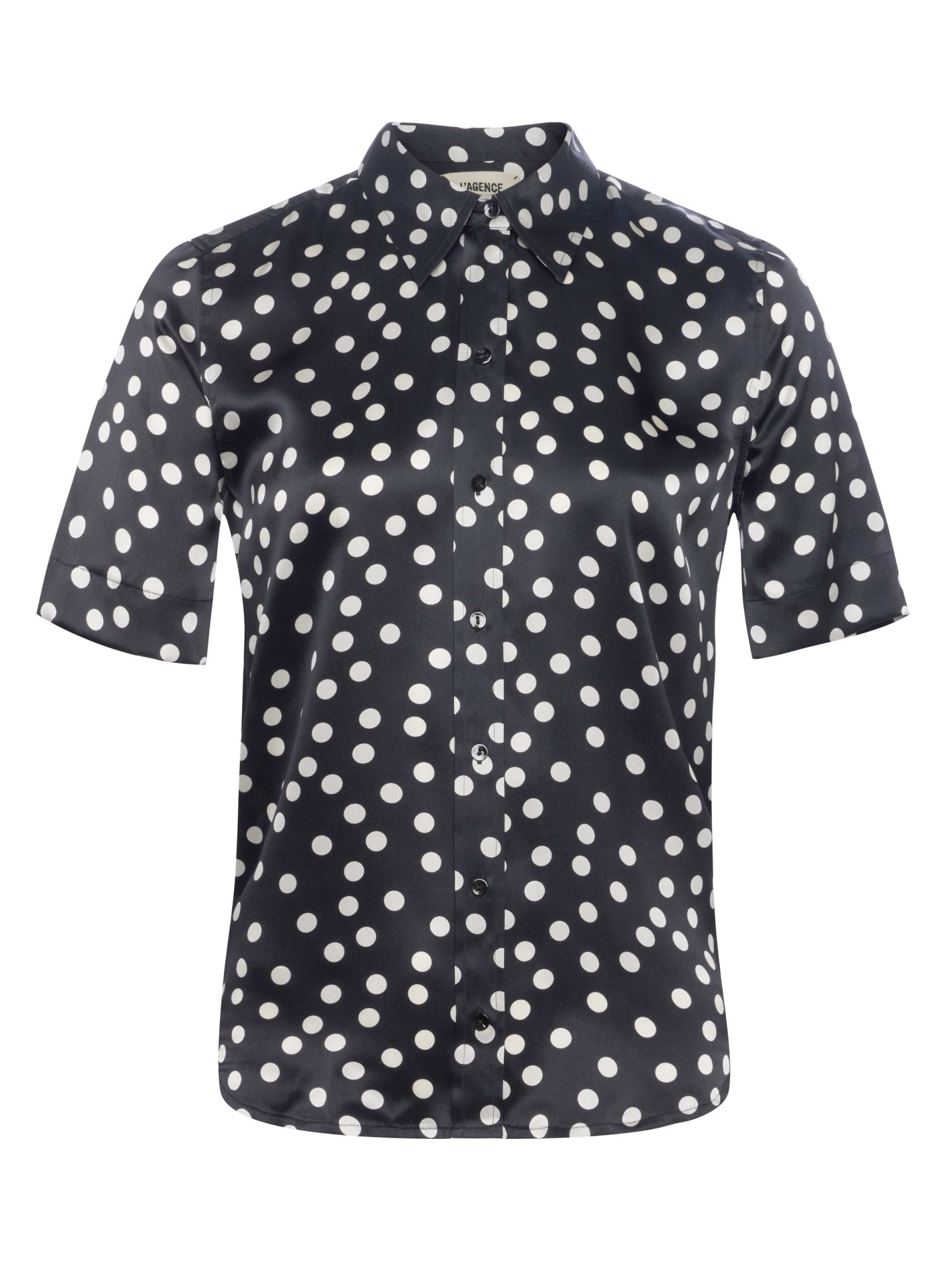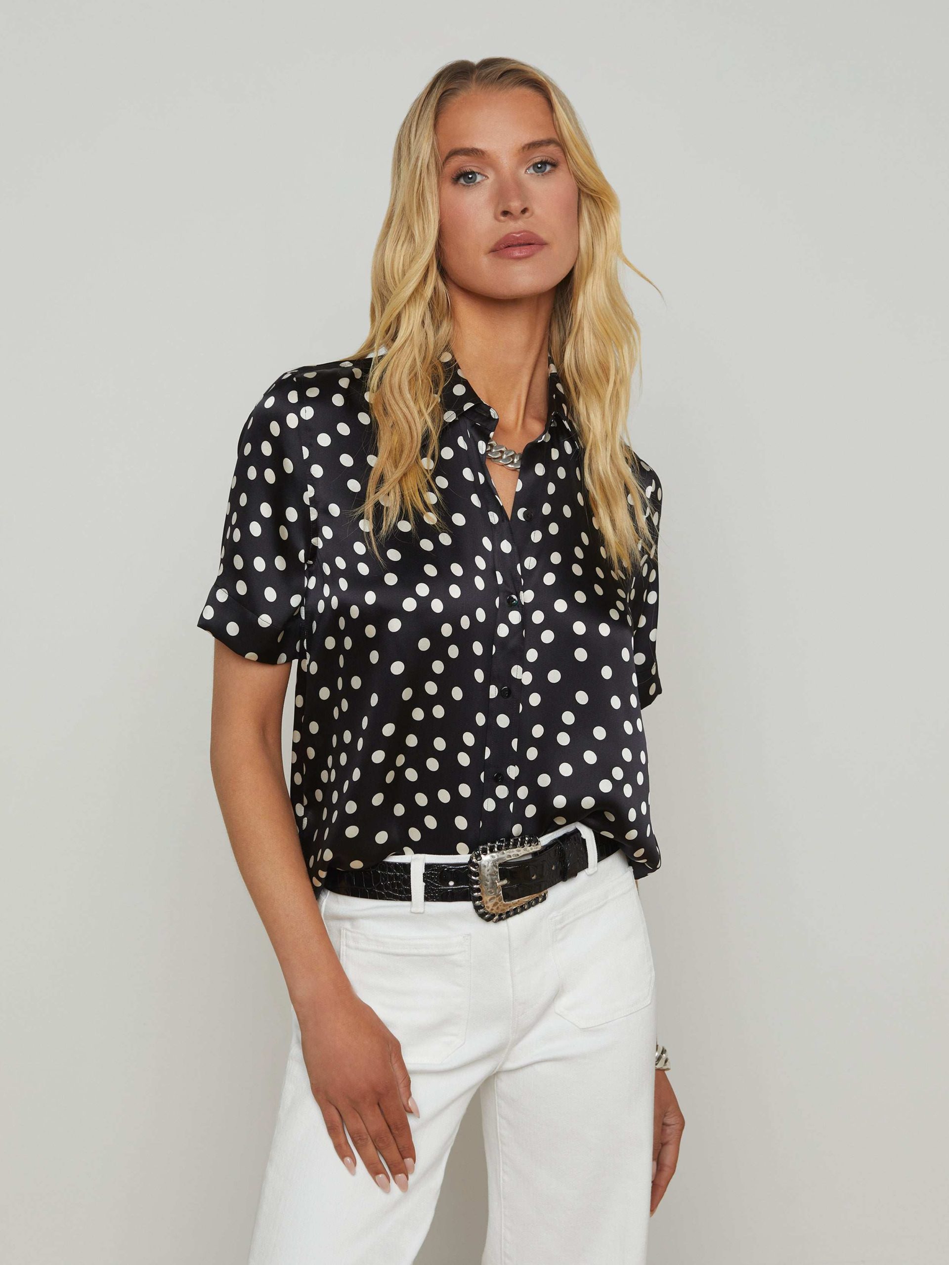 Meet our bestselling short sleeve silk blouse. The Ellah is back this season in a playful polka dot.