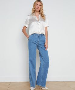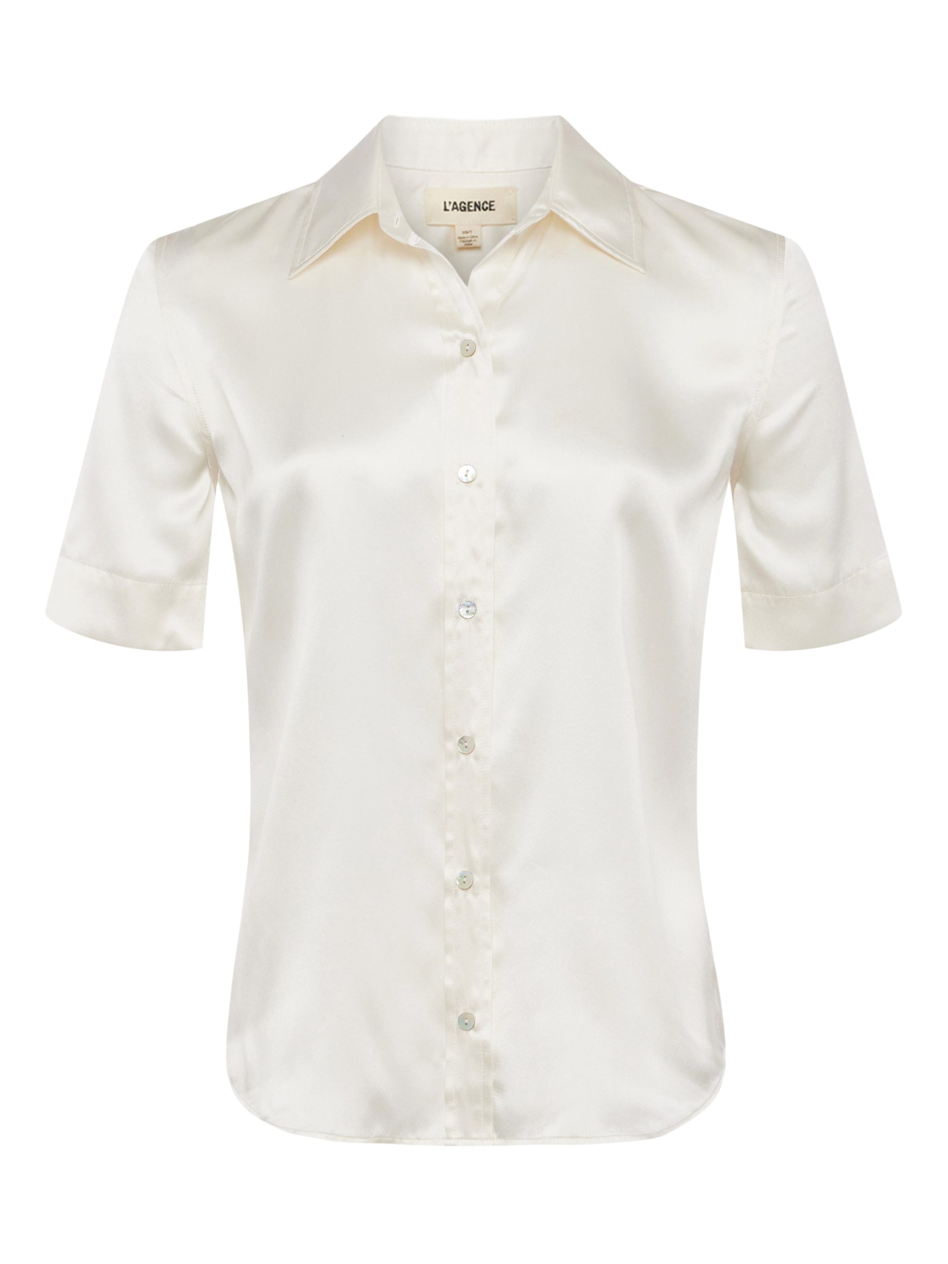 Introducing the short-sleeve version of our signature silk blouse: the Ellah. In lustrous silk charmeuse, she falls effortlessly over the figure for a flattering fit. Shirting details like a trim collar, back yoke and shirttail hem keep her timeless. Pair with denim for instantly elevated style. Style No. 40648CLW-IVOR