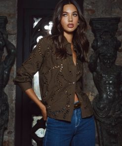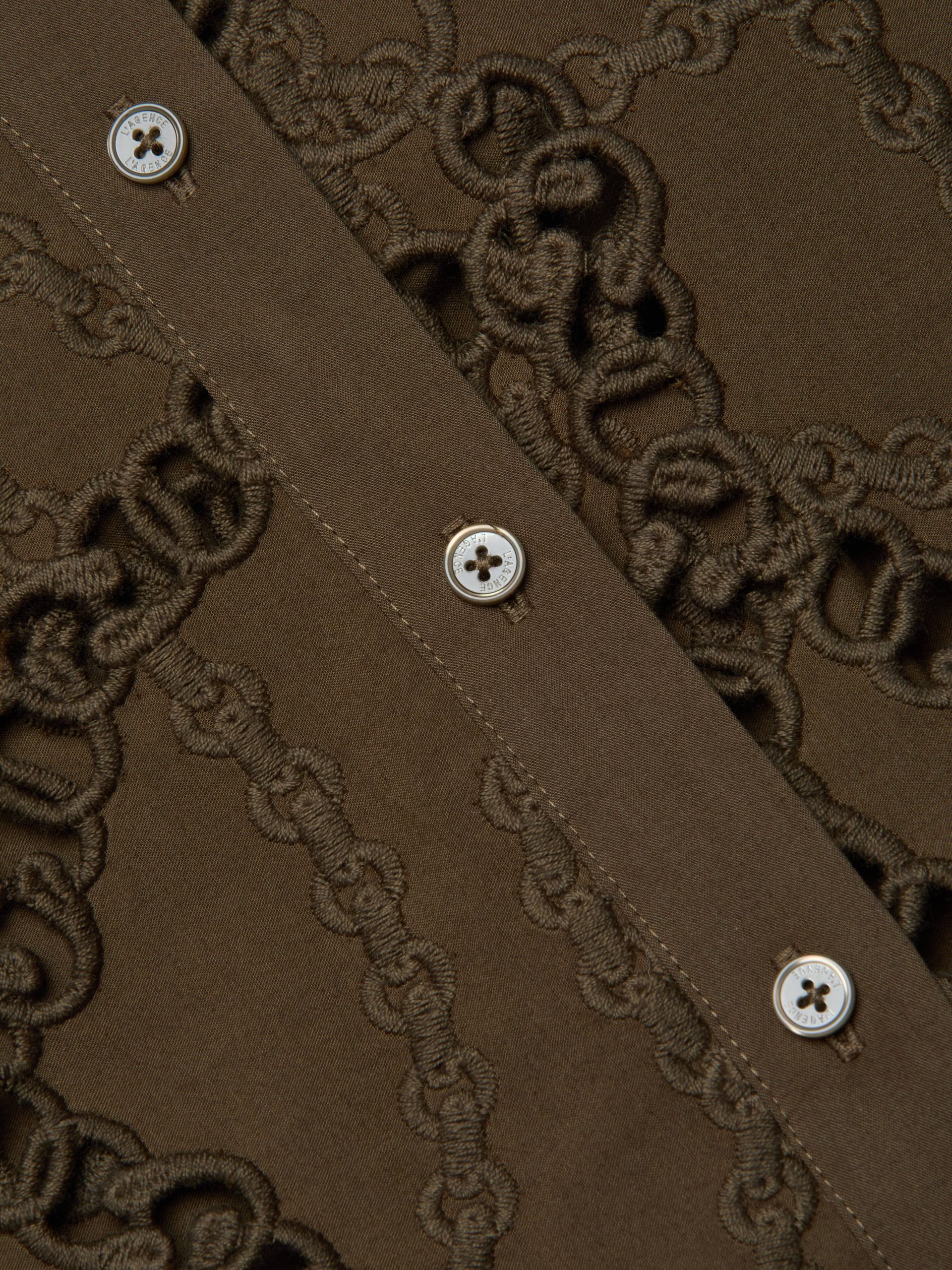 Our signature button-down shirt has been updated for the season with custom chain embroidery and eyelets giving the Ellery a new distinctive look.