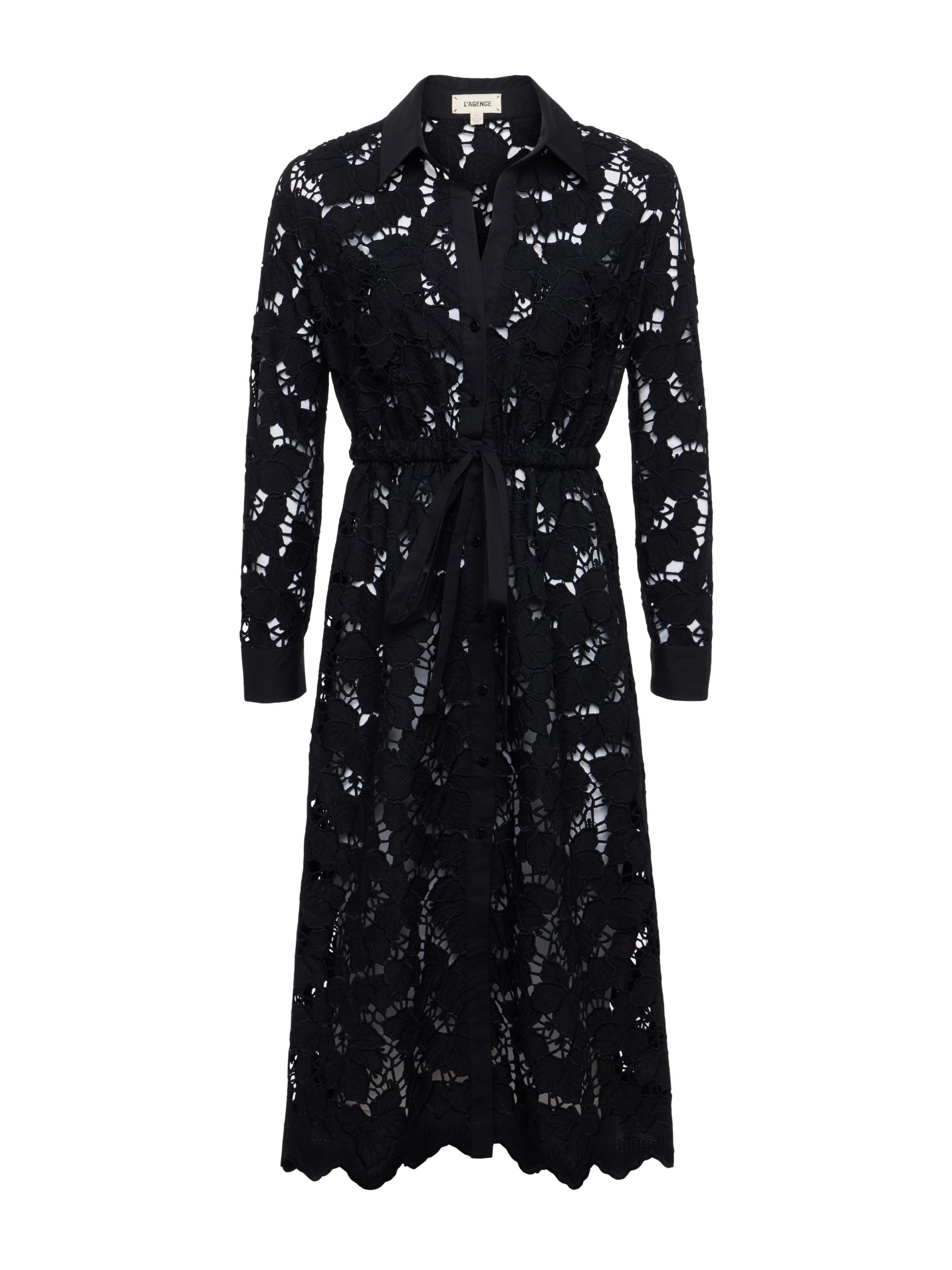 Feminine and refined, the Emilio lace shirtdress features a sophisticated silhouette with a drawstring waist for subtle shape. Layer it over one of our signature slip dresses or on its own for a more daring look.