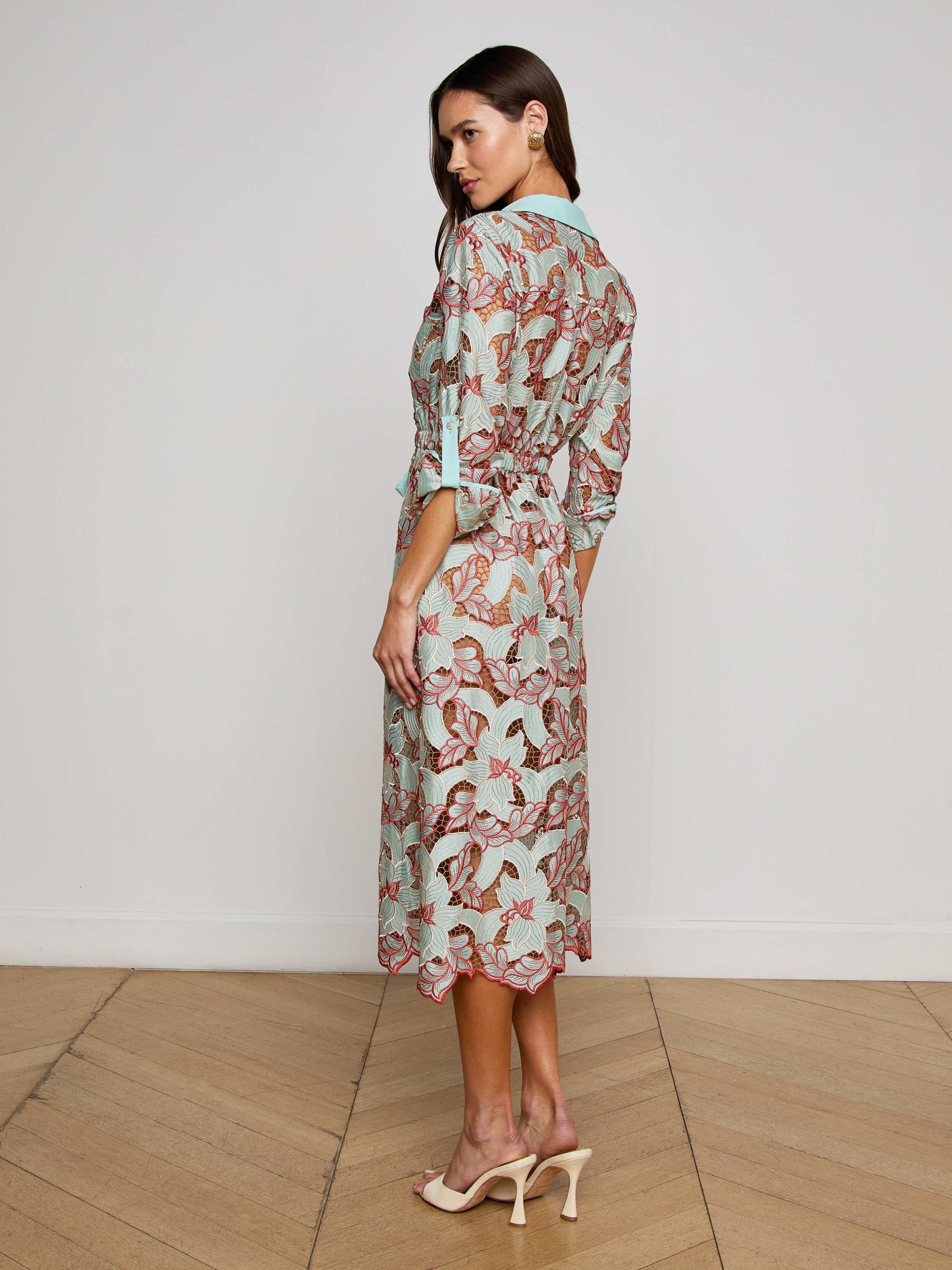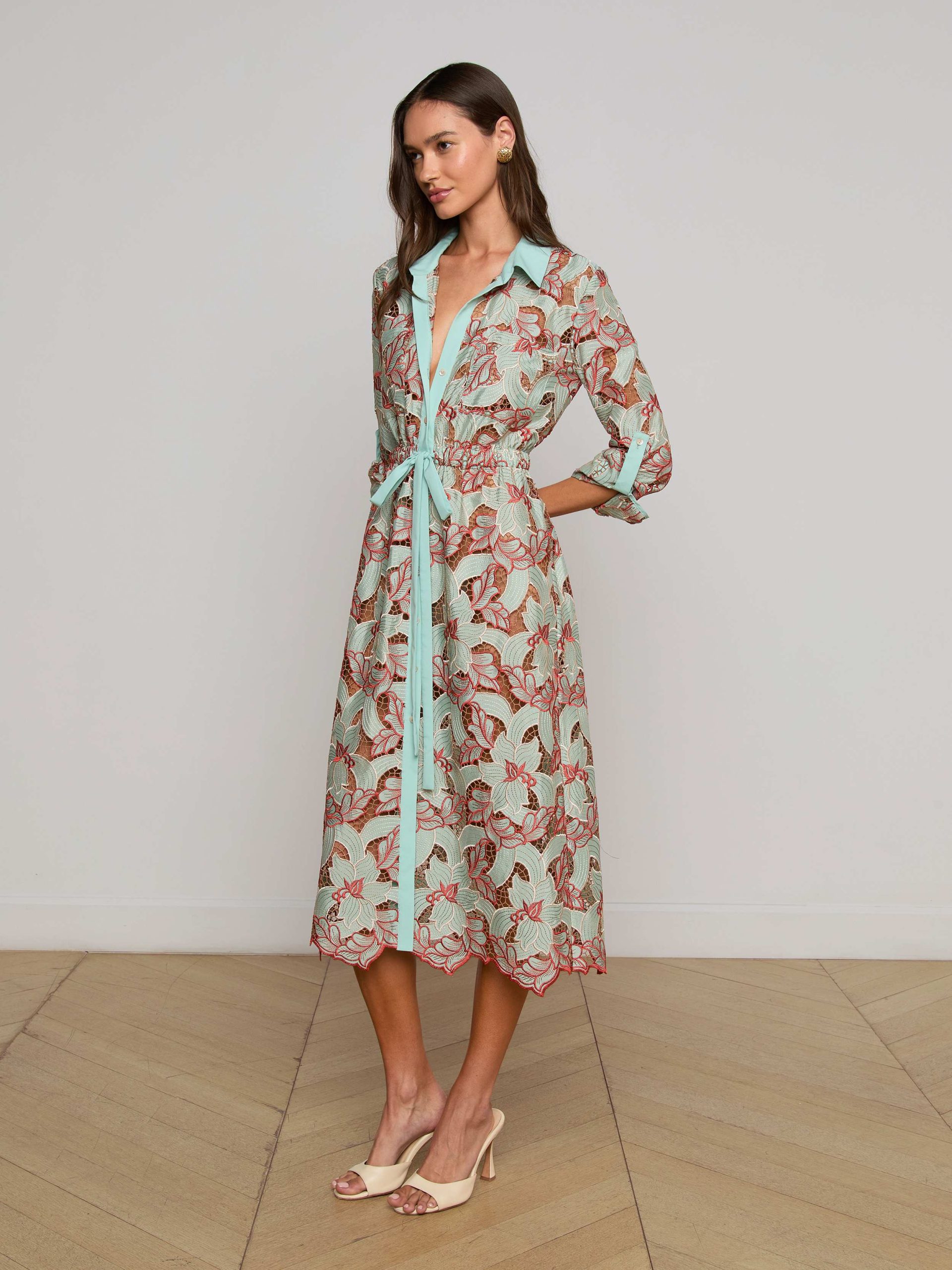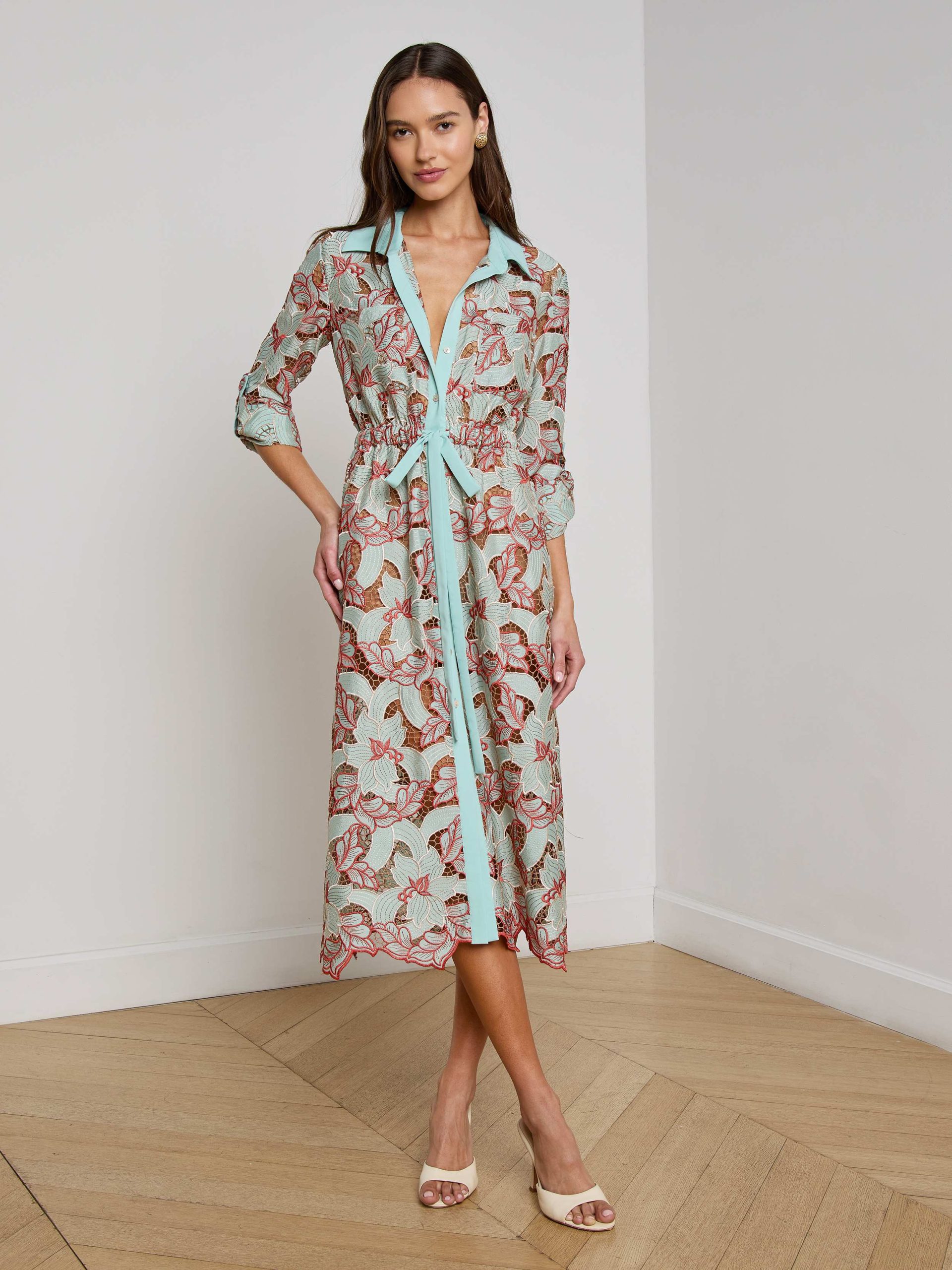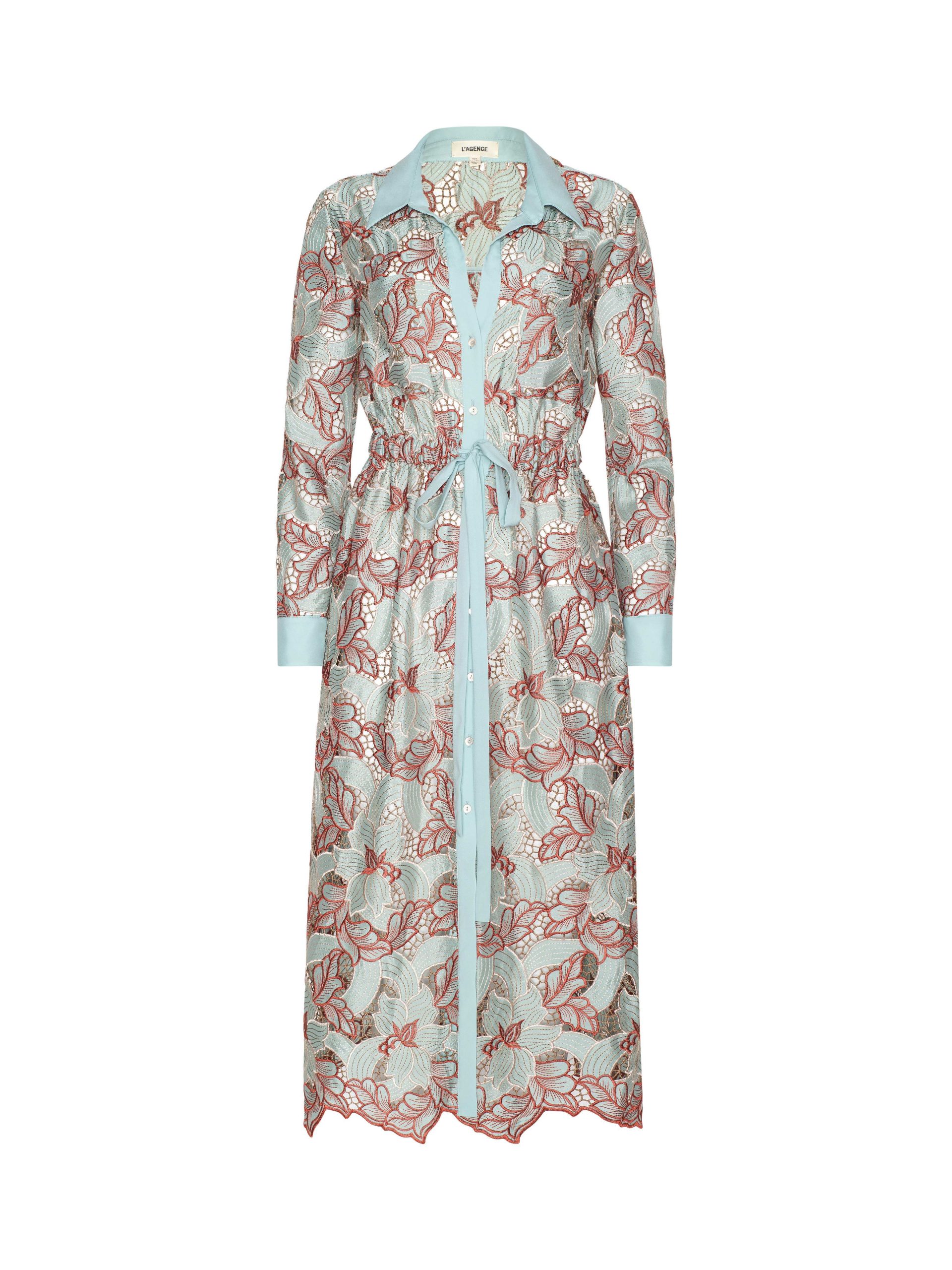 Feminine and refined, the Emilio lace shirtdress features a sophisticated silhouette with a drawstring waist for subtle shape. Wear it from beach to boardwalk for an effortlessly chic look or layer it over a slip dress for brunch. Now in a multicolored openwork lace.