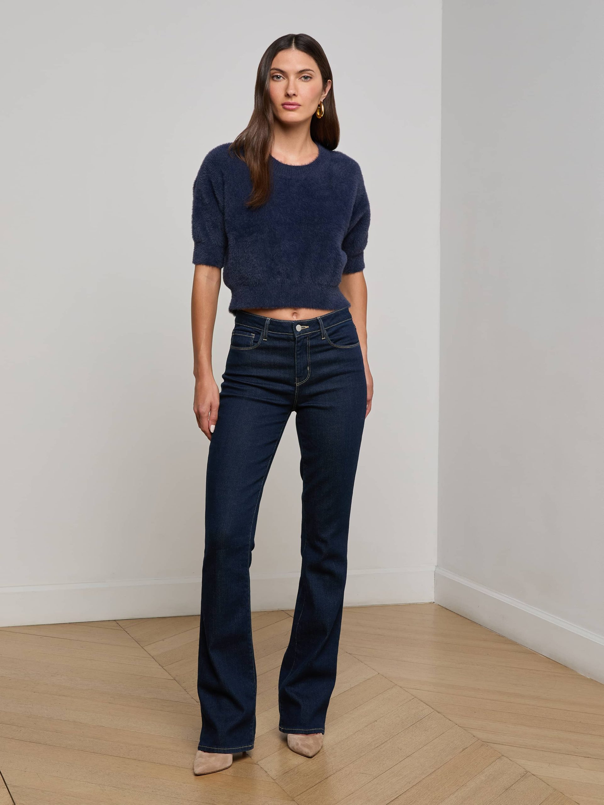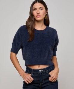 Meet Guinevere, your new cozy essential. This cropped short-sleeve top is spun from an ultra-soft, plush knit that feels as luxurious as it looks. Designed with a relaxed fit and ribbed trim, it hits just above the waist for a flattering silhouette.