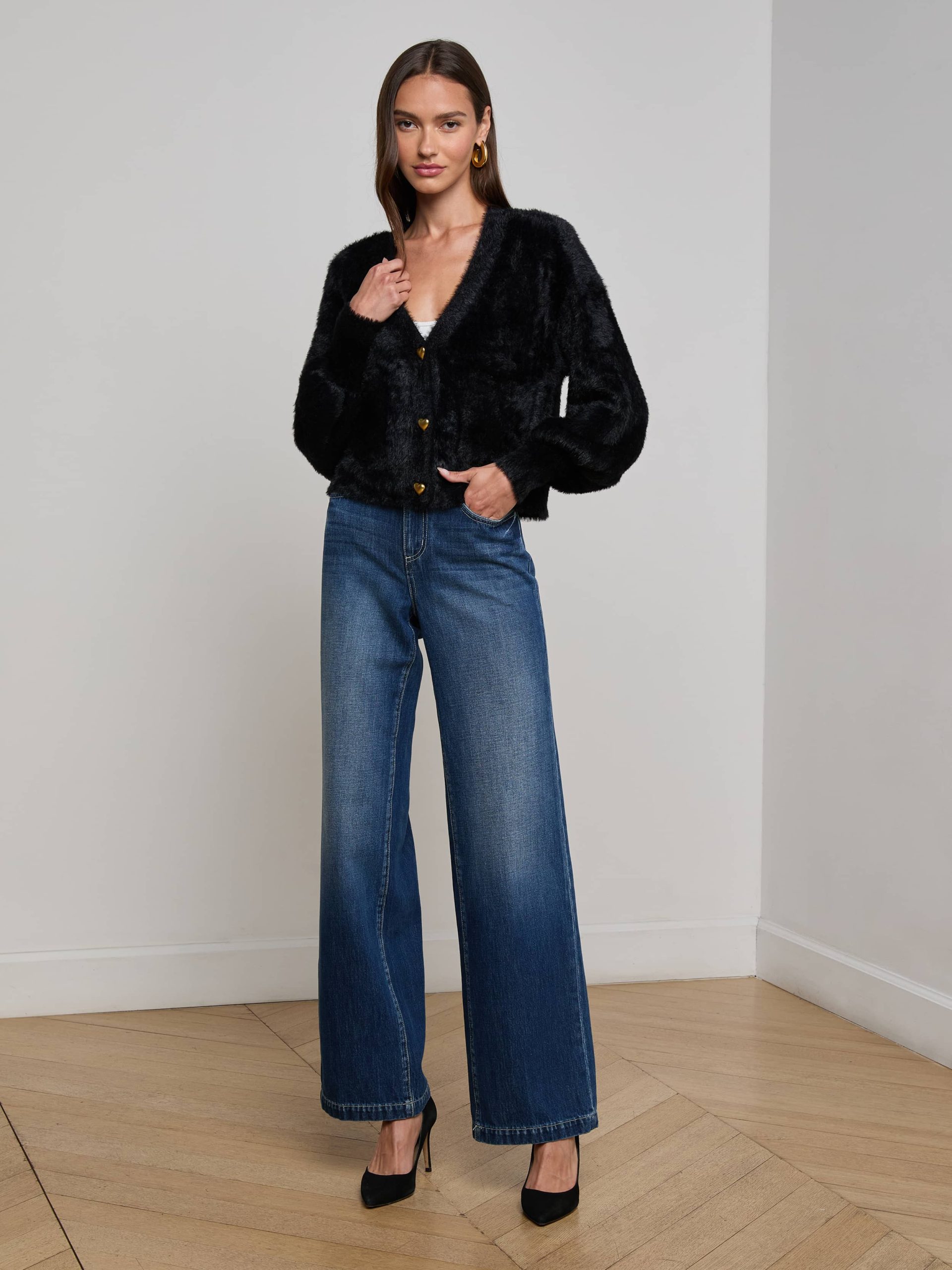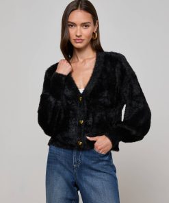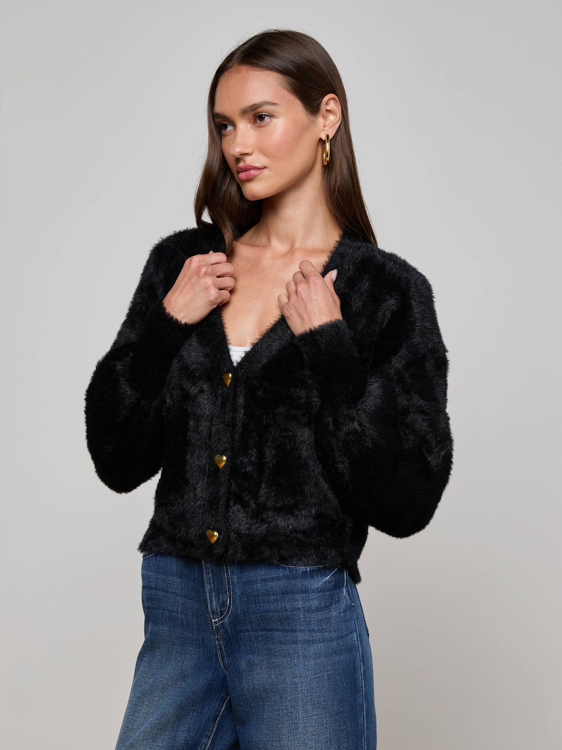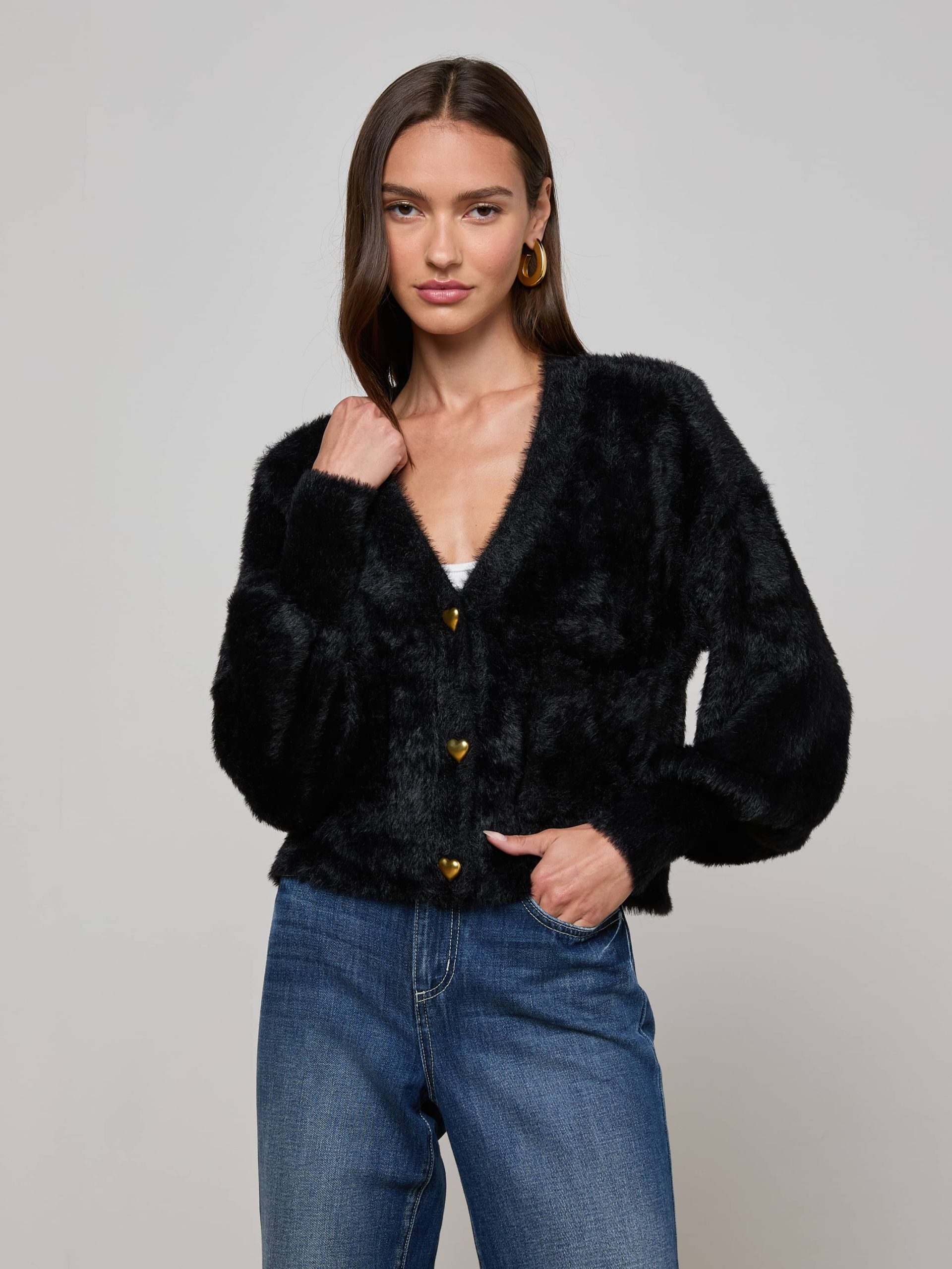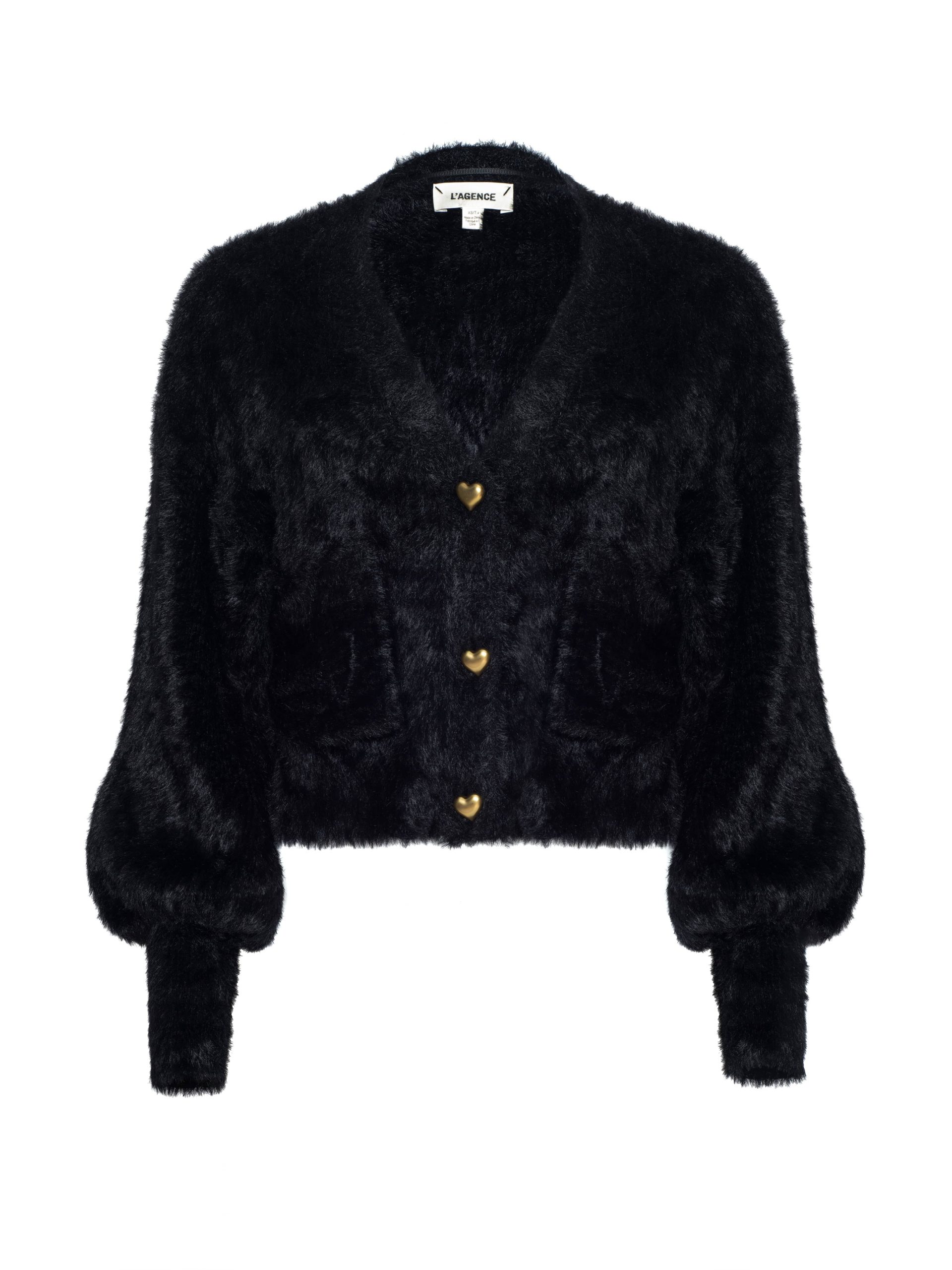 The super soft, cozy-chic cardigan to layer over everything and live in all season long. Now in black with gold heart buttons for a romantic touch of glamour.