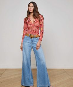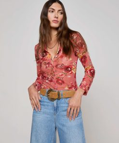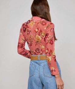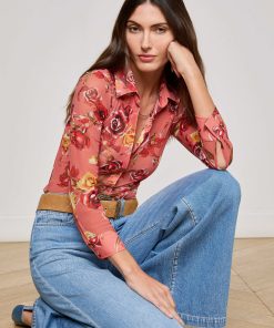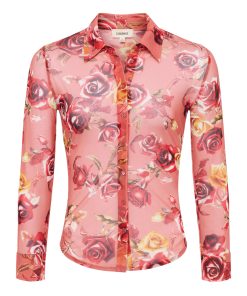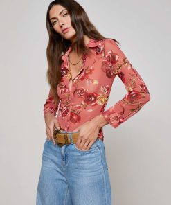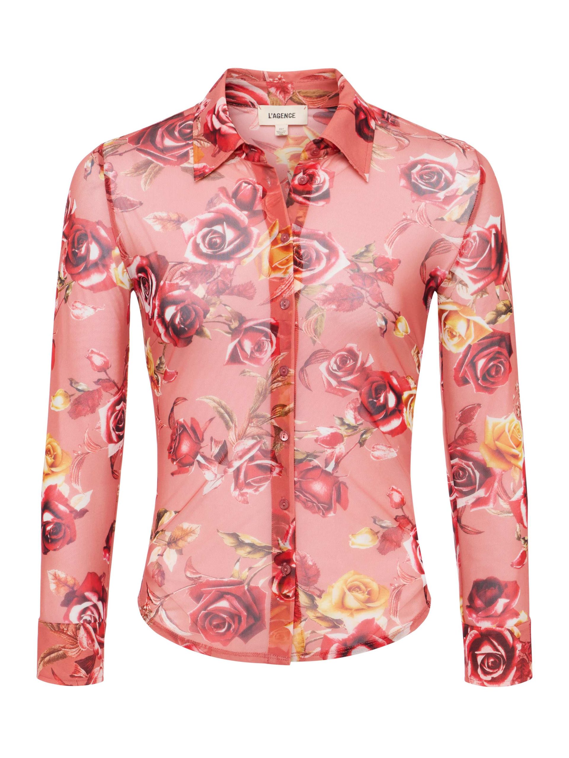 Sultry and sheer, the Indiana is a button-down top, featuring a Western-inspired rose print. Layer it over our Nica bodysuit for day and pair with nude undergarments for night.