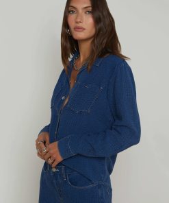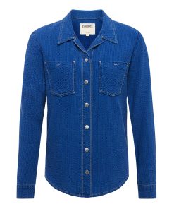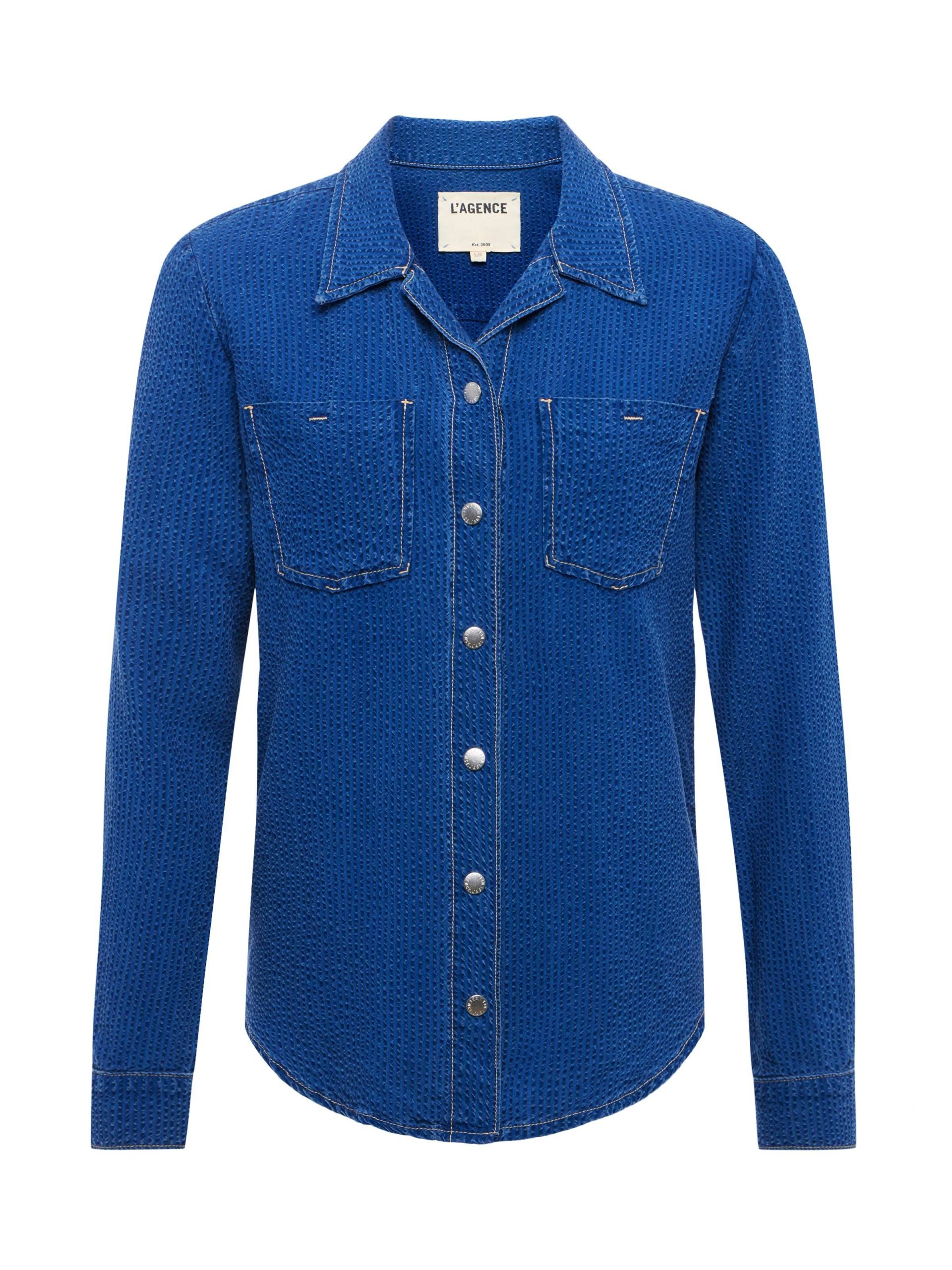 The essential L’AGENCE denim shirt is pajama-soft and ultra wearable. Now in a textured seersucker chambray, the Isla pairs well with anything and everything in your closet.