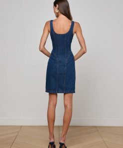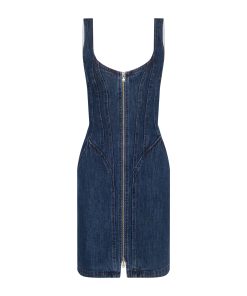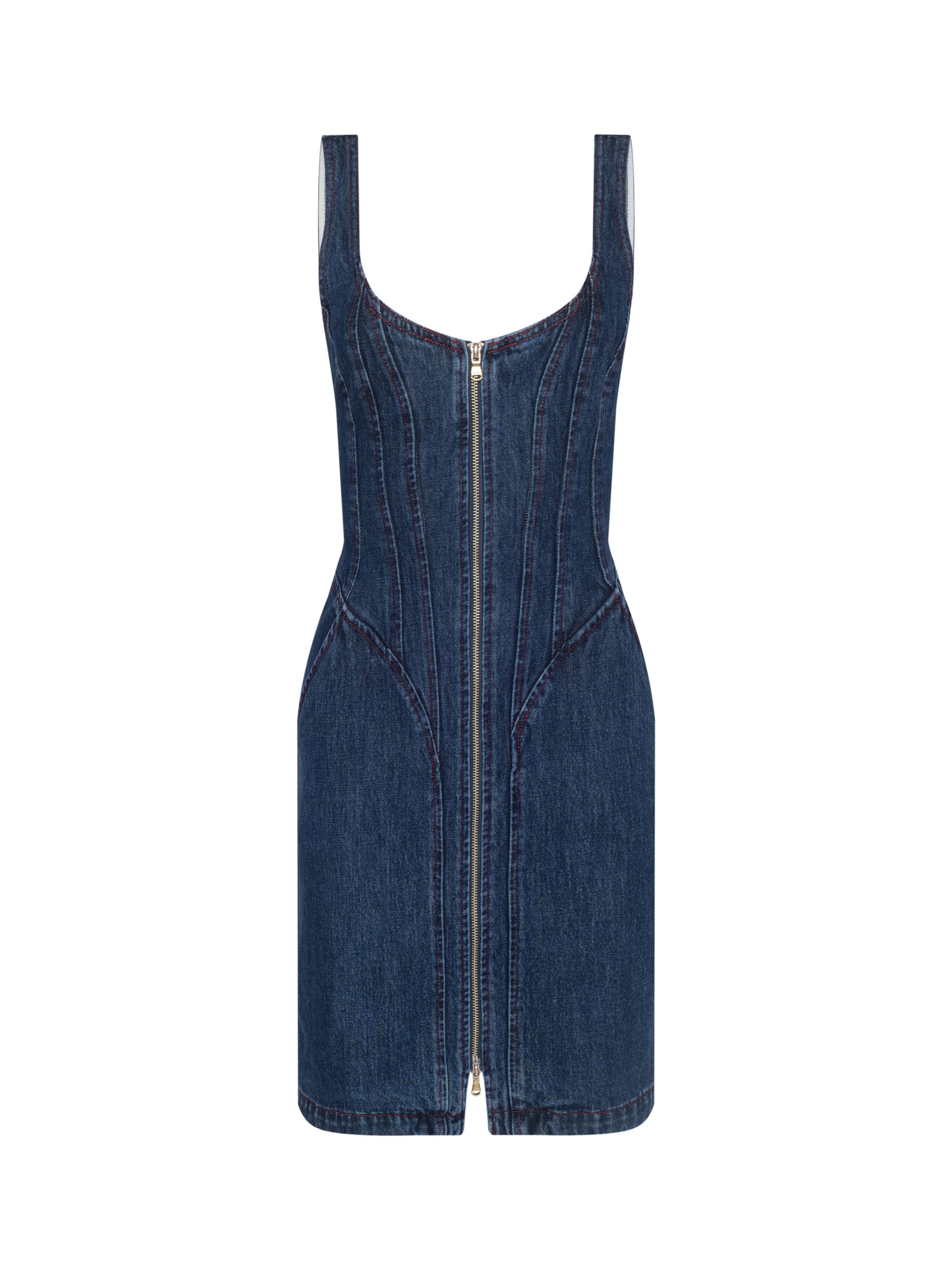 Meet your new new favorite mini dress. The Jaxyn is a corset-style mini dress featuring contoured seams and a bold front zip designed to define and flatter the figure. Now in indigo.