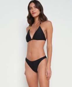 Our high-leg bikini bottom, in timeless black. Jean sits at the hip, beautifully elongating the legs. In a four-way stretch nylon design with full coverage, she offers secure freedom of movement. Pair with the coordinating Annabelle top for chic poolside style. Style No. LG4MJ91-BLAC