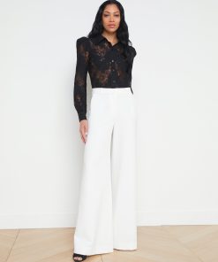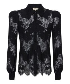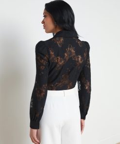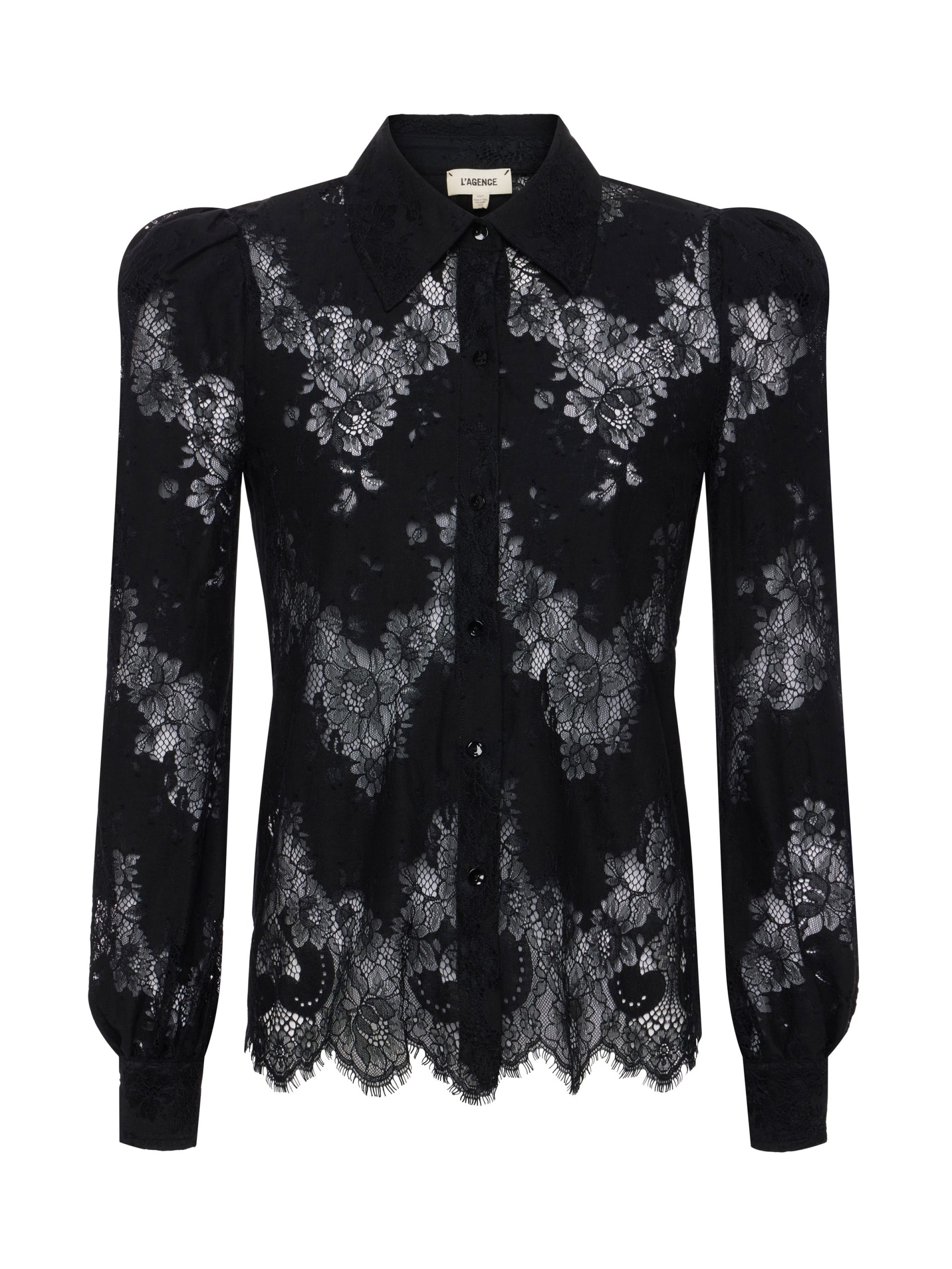 Our most feminine button-up blouse, now in chic black lace. Puff shoulders create gentle volume while a sharp collar adds definition. Pair with white denim for a romantic day-to-night look. Style No. 40370ACE-BLAC