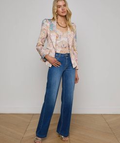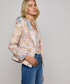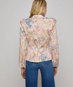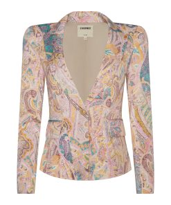 A flattering single-breasted blazer crafted with an exaggerated shoulder and cinched waist for a beautifully proportioned silhouette. Now in a sunwashed paisley print.