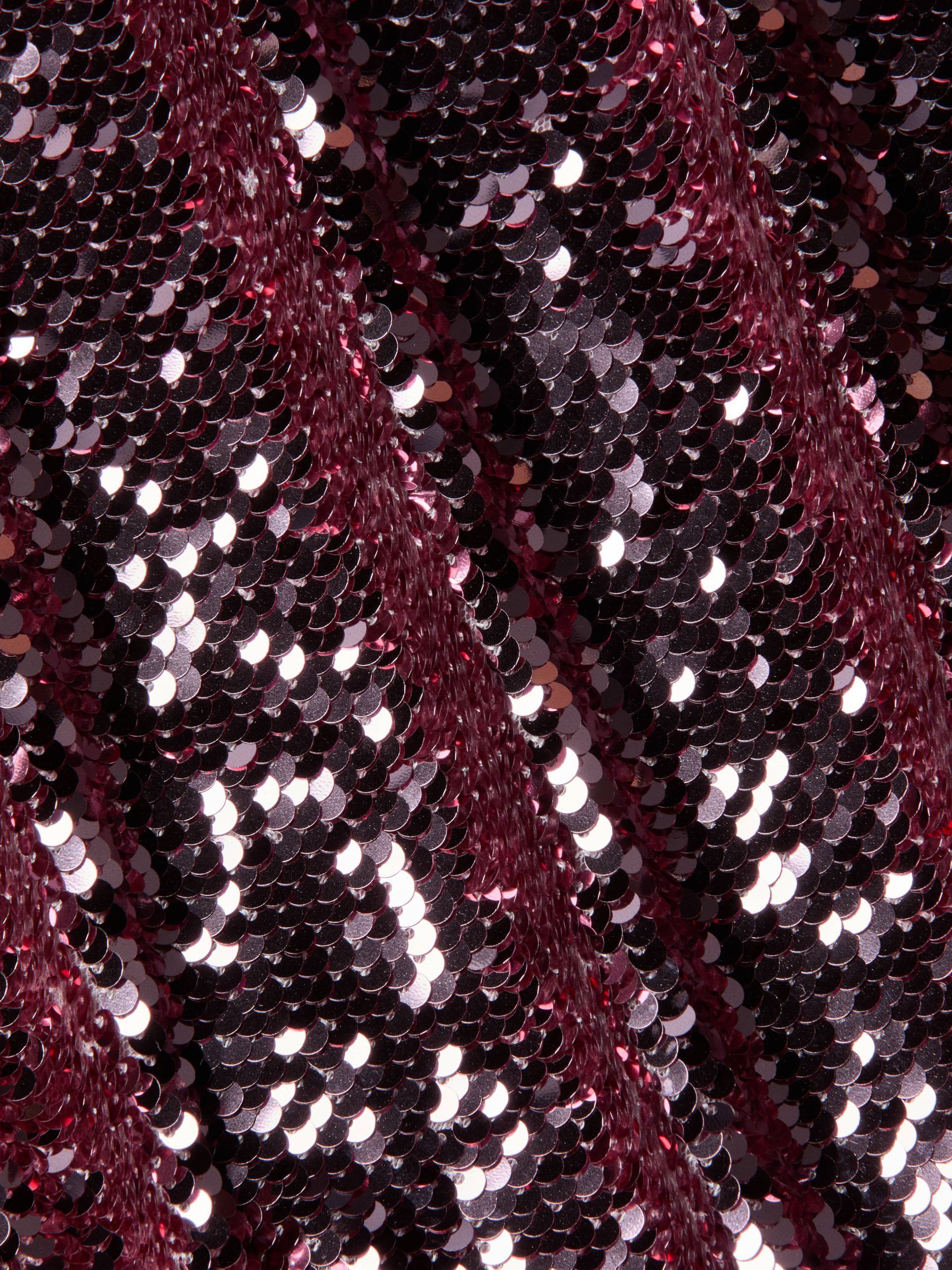 When you wear the Karma dress, good things are bound to come your way. With allover mauve sequins, it shimmers with a liquid-like sheen. A structured bodice flatters the figure, adding to its wow-factor, and a high back slit allows for ease of movement. Perfect for making an impression.