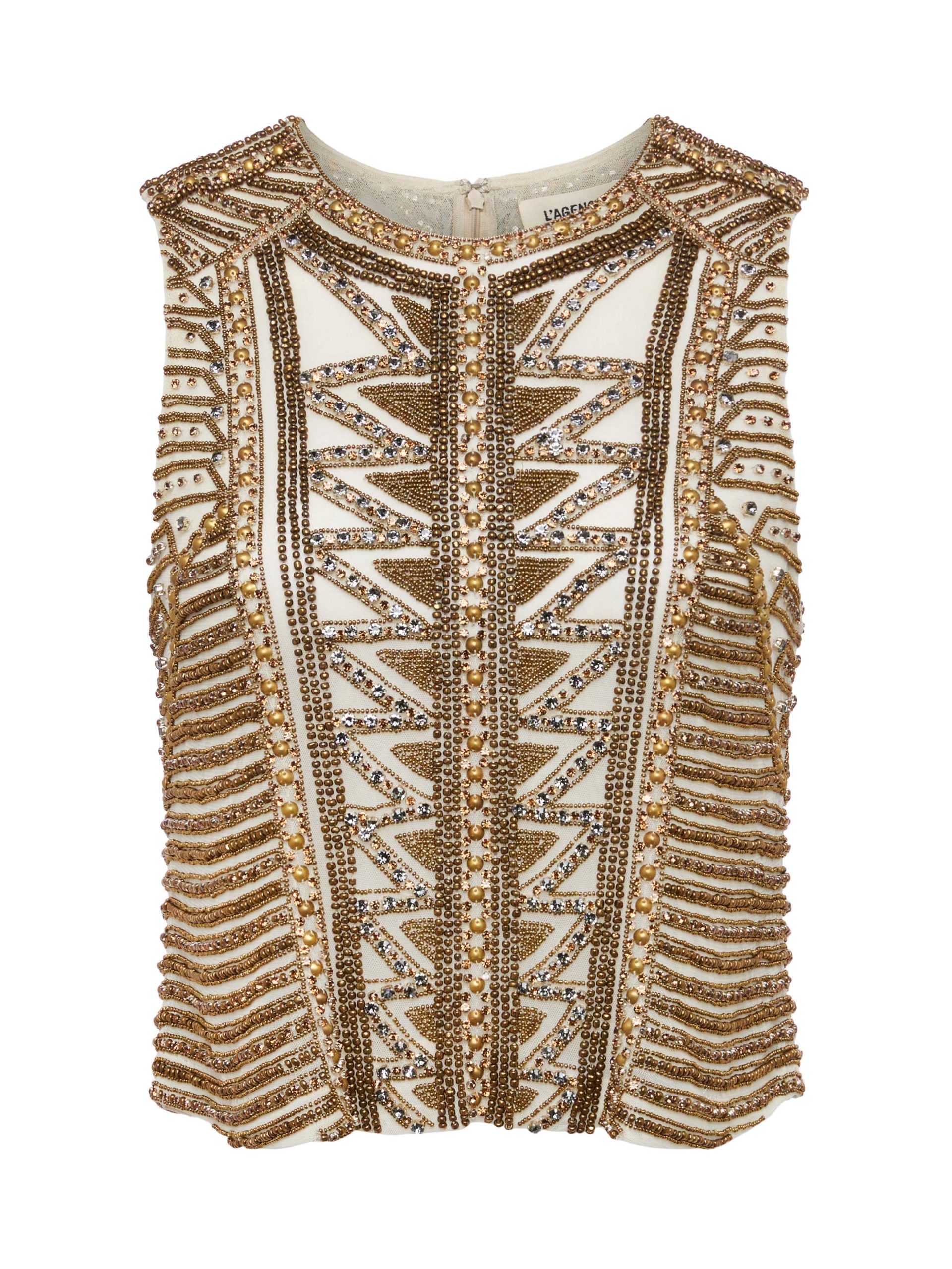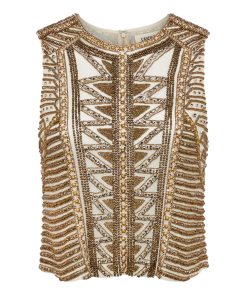 The Kienna stuns with its intricate beading, pearls, and sequins arranged in a striking geometric pattern. Each garment requires 6 days of meticulous sewing and beading to construct. This is the top to wear for your next event and every night out.