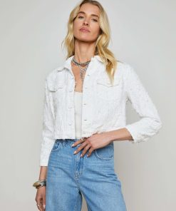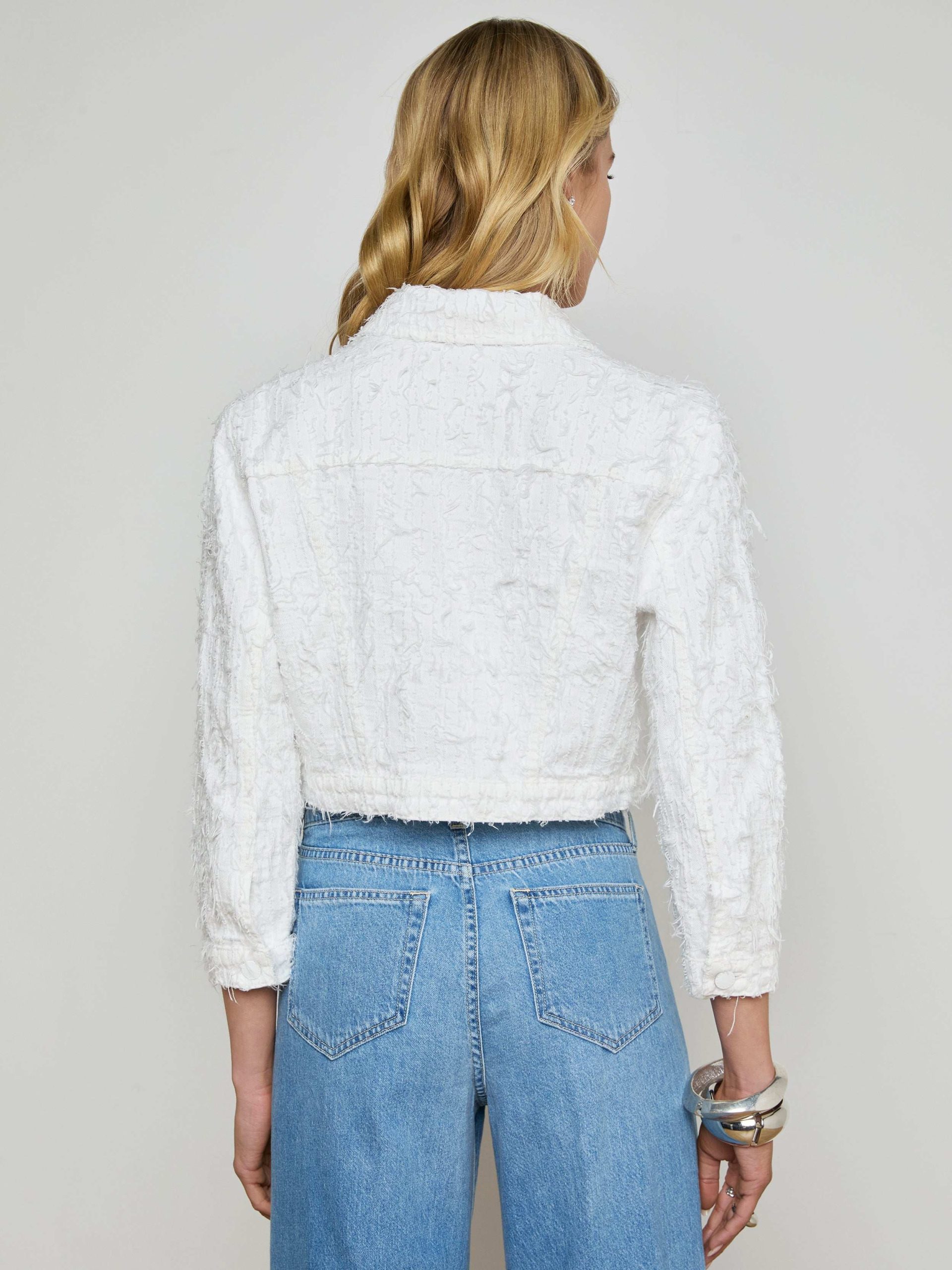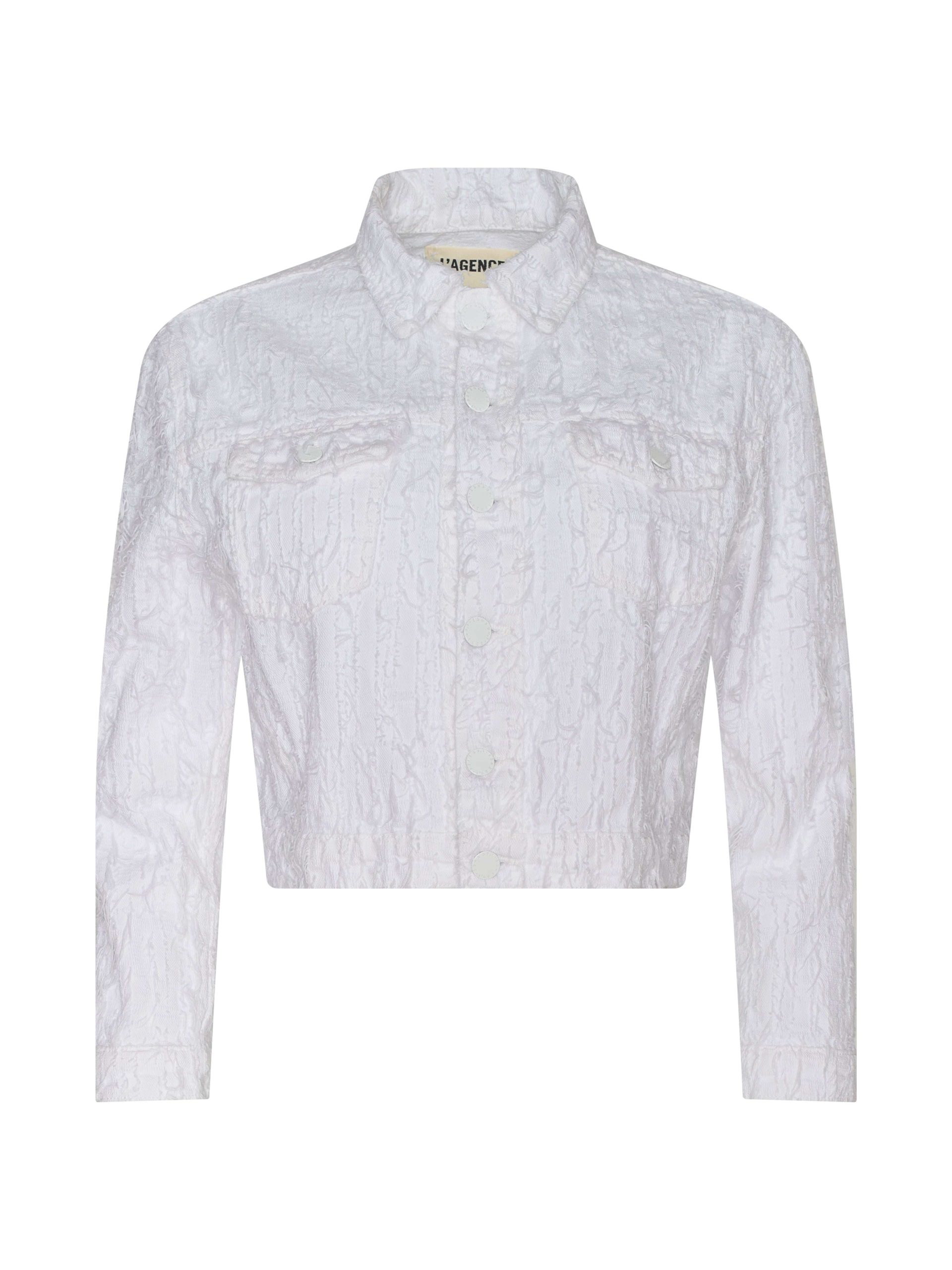 The iconic jean jacket reimagined in a clean cropped cut. Now in a textured white denim.