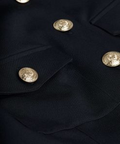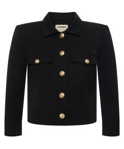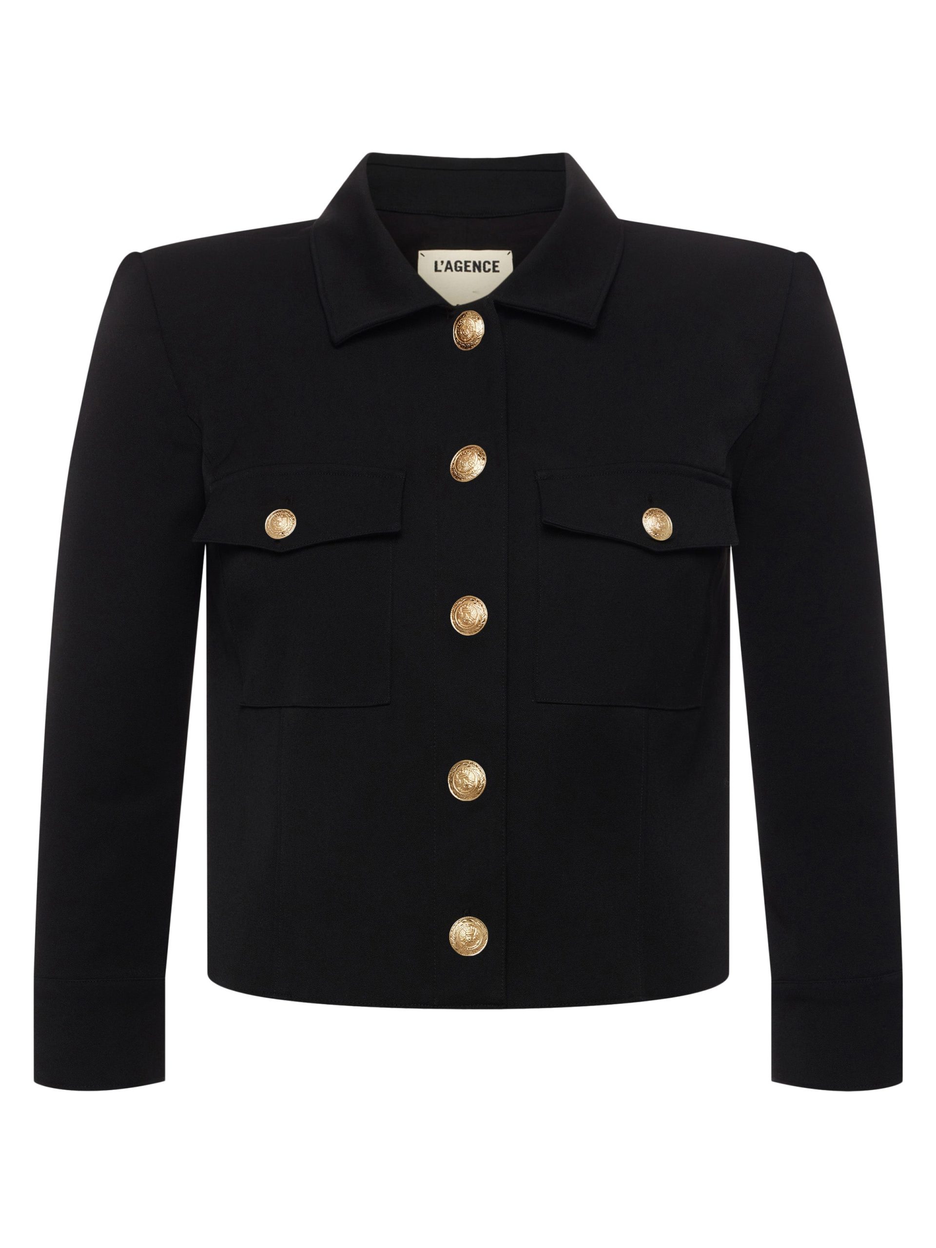 The Kumi is our modern update to the classic three-quarter sleeve jacket. A strong shoulder and tapered silhouette create flattering definition. This versatile black style is crafted from a supple stretch-suiting fabrication and finished with flap pockets and our signature gold embossed dome buttons. Pair with high-waisted denim for a perfectly proportioned look. Style No. 1769NGX-BLAC
