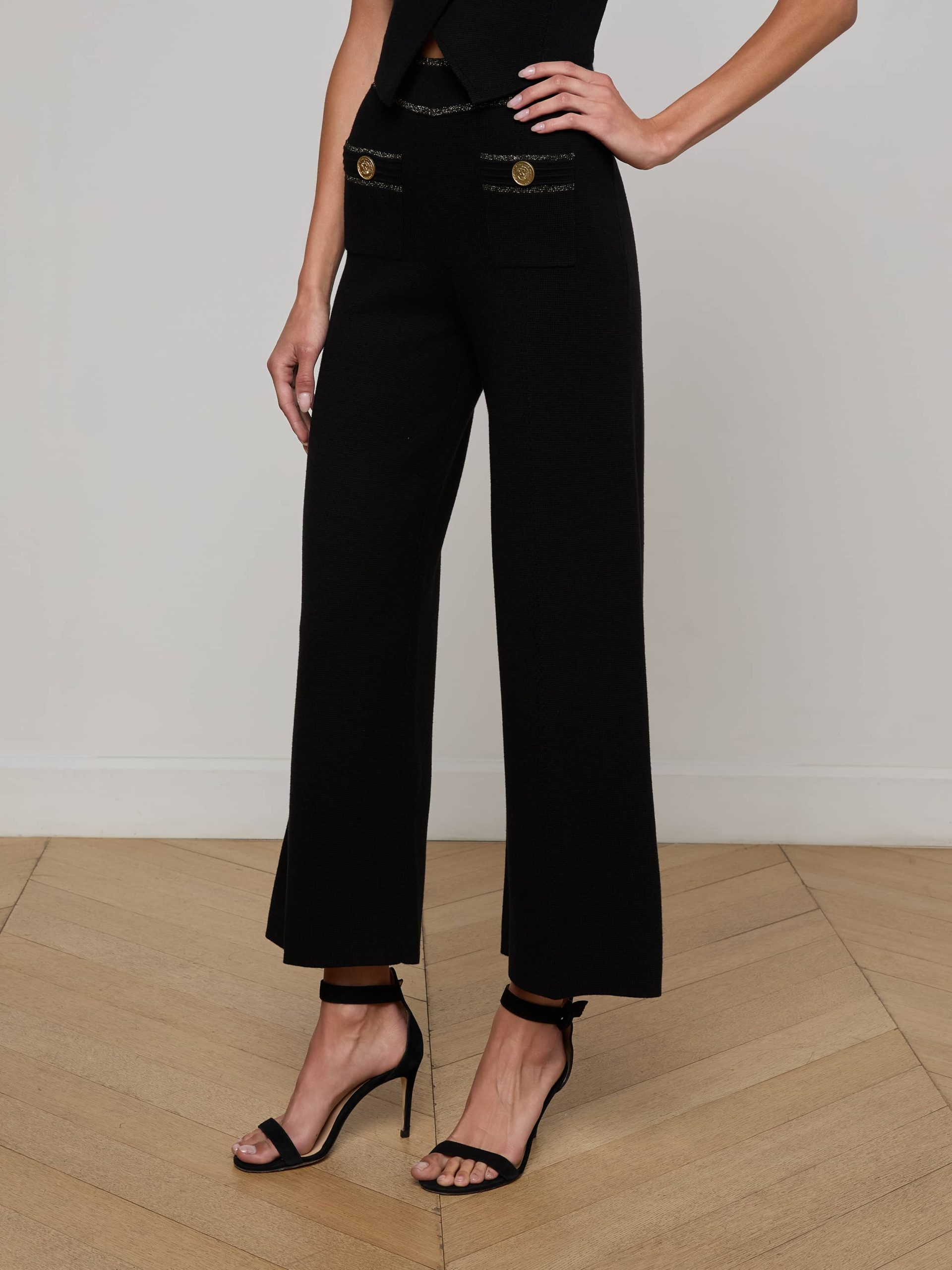 From the airport to the office to evening, the Madrid offers instant polish without compromising on comfort. Embrace the power of the knit pant, now in timeless black with subtle lurex trim.