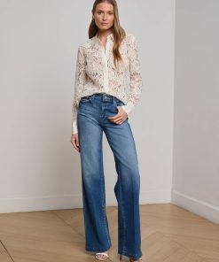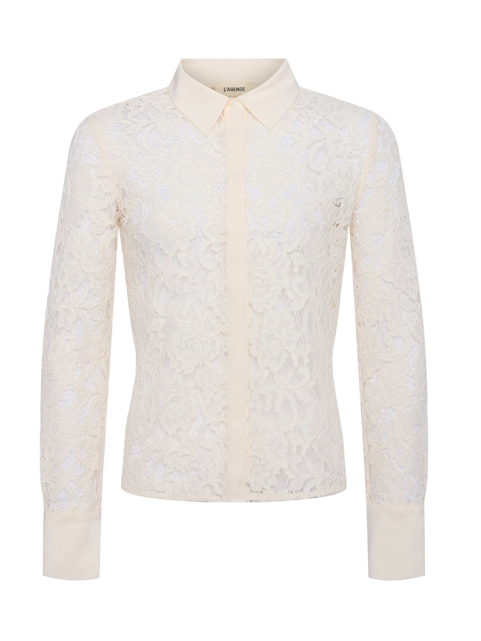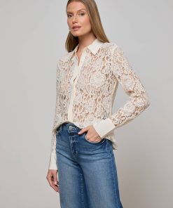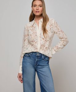 Sheer floral lace makes a romantic statement, worn alone for date night or layered over a camisole for the office. Now in vintage white.