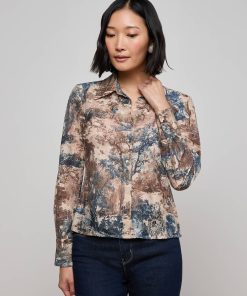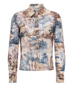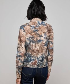 The lace blouse like you’ve never seen it before. This season, the Maia blouse is back in our eye-catching Western toile print, constructed with classic button down shirt details and sheer lace insets.