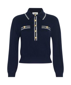 The Malaki sweater blends ease and polish in a wear-anywhere silhouette. Designed with relaxed 3/4 sleeves and a flattering banded hem, it features contrast trims and gold-tone buttons for a touch of luxe. Perfect with dark-wash denim for a look that’s both laid-back and elevated, this soft knit will be on heavy rotation this season and beyond.