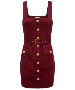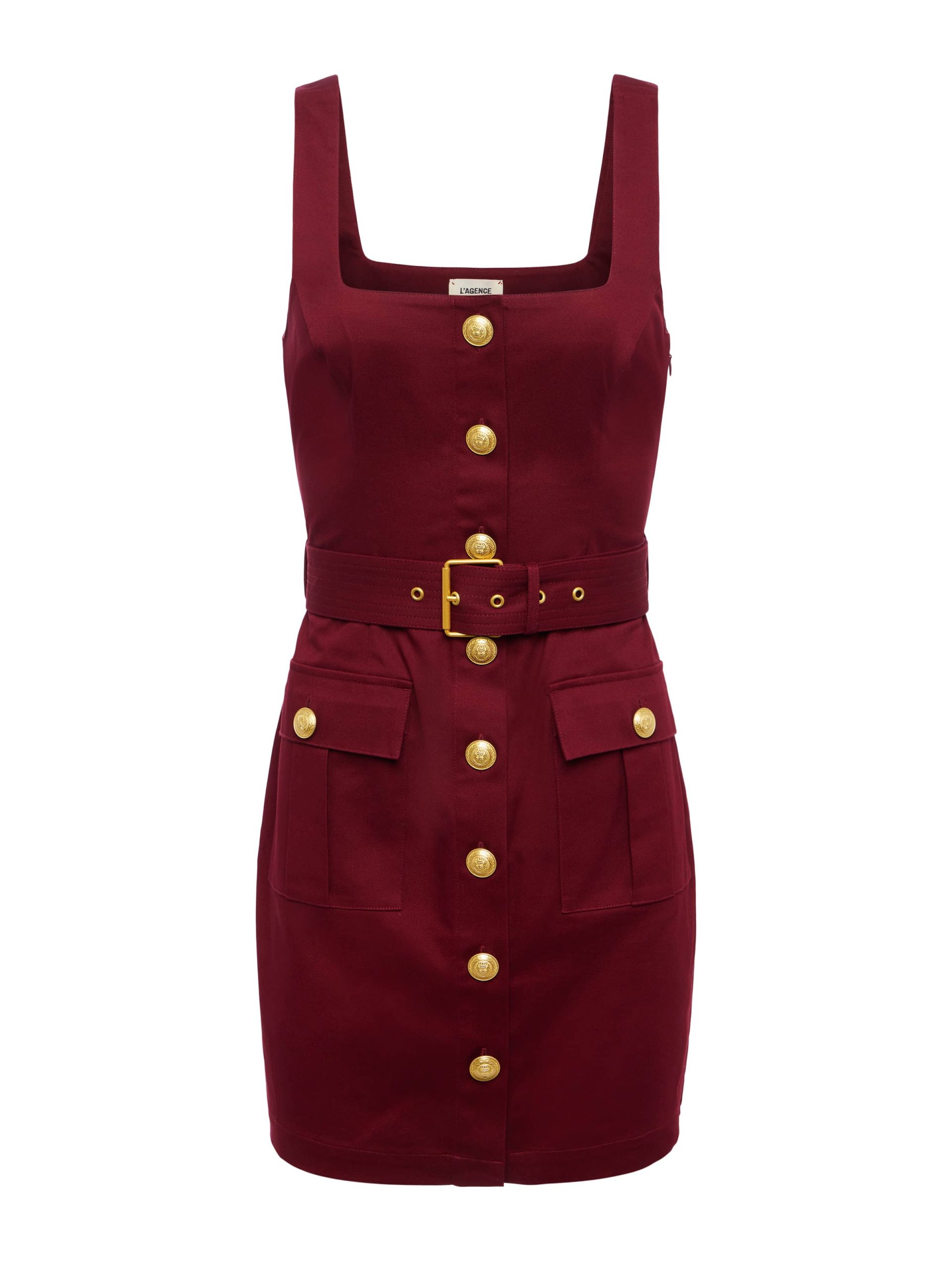 The structured fit of our bestselling Midy mini dress shapes and sculpts the figure while an adjustable belt cinches the waist. Now in burgundy.