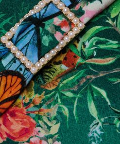 A bikini bottom designed with a flattering sash waistband. Now updated in a lush butterfly floral print with faux pearl accents.