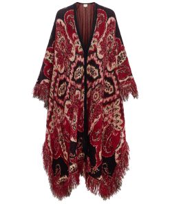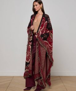 This style debuted at our Fall ‘25 NYFW presentation. Dramatic in scale and rich in detail, the Naoko poncho transforms any look with its artfully chic presence. A tapestry-inspired jacquard showcases an oversized paisley motif, framed by thick fringe for added texture. The open-front design drapes effortlessly, while the intricate pattern evokes vintage opulence with a free-spirited edge. More than just a layer, it’s a standout piece that will set trends.