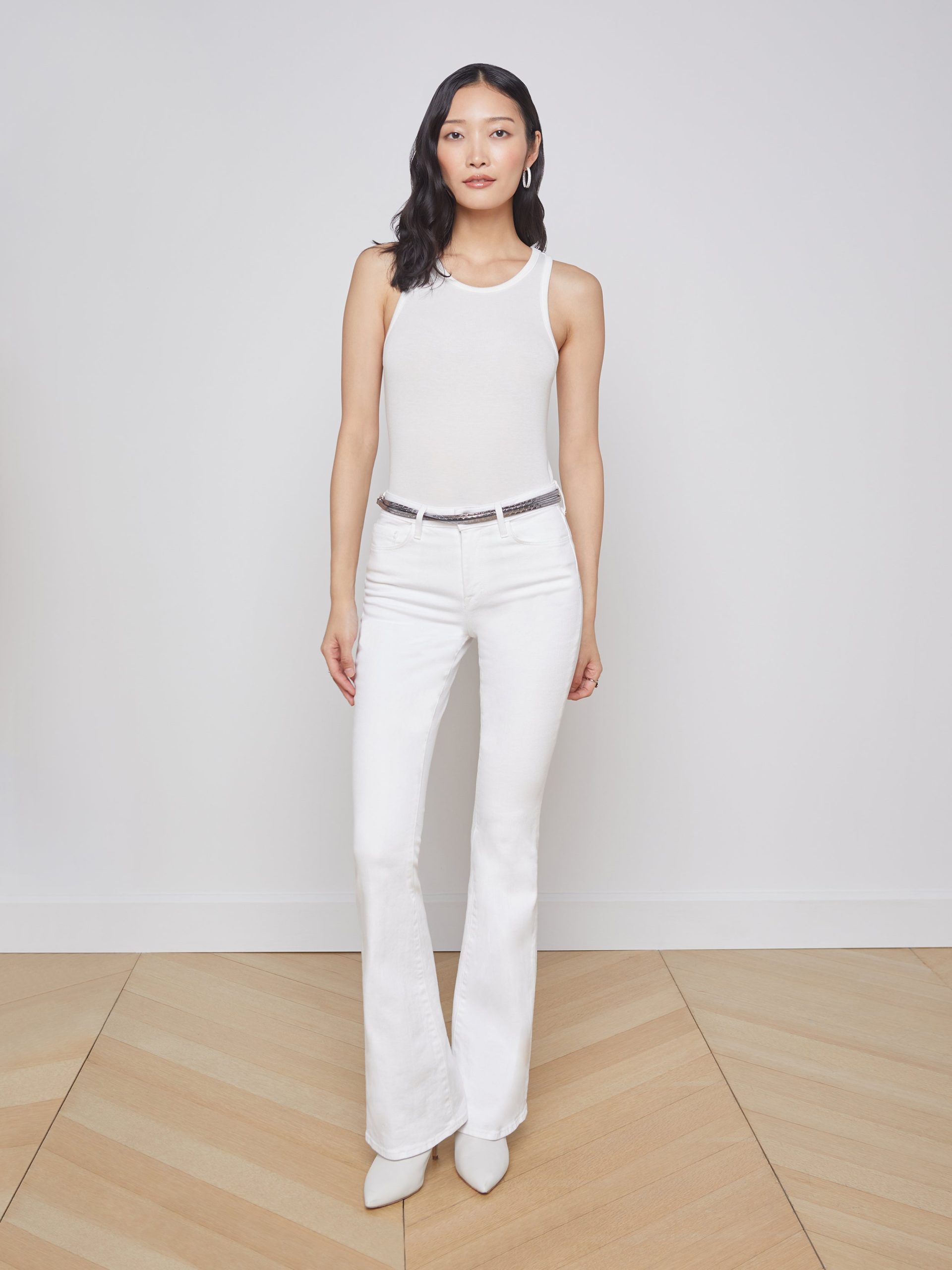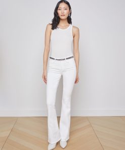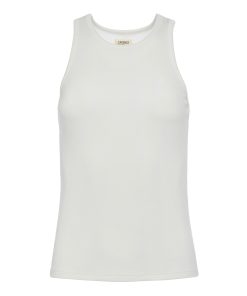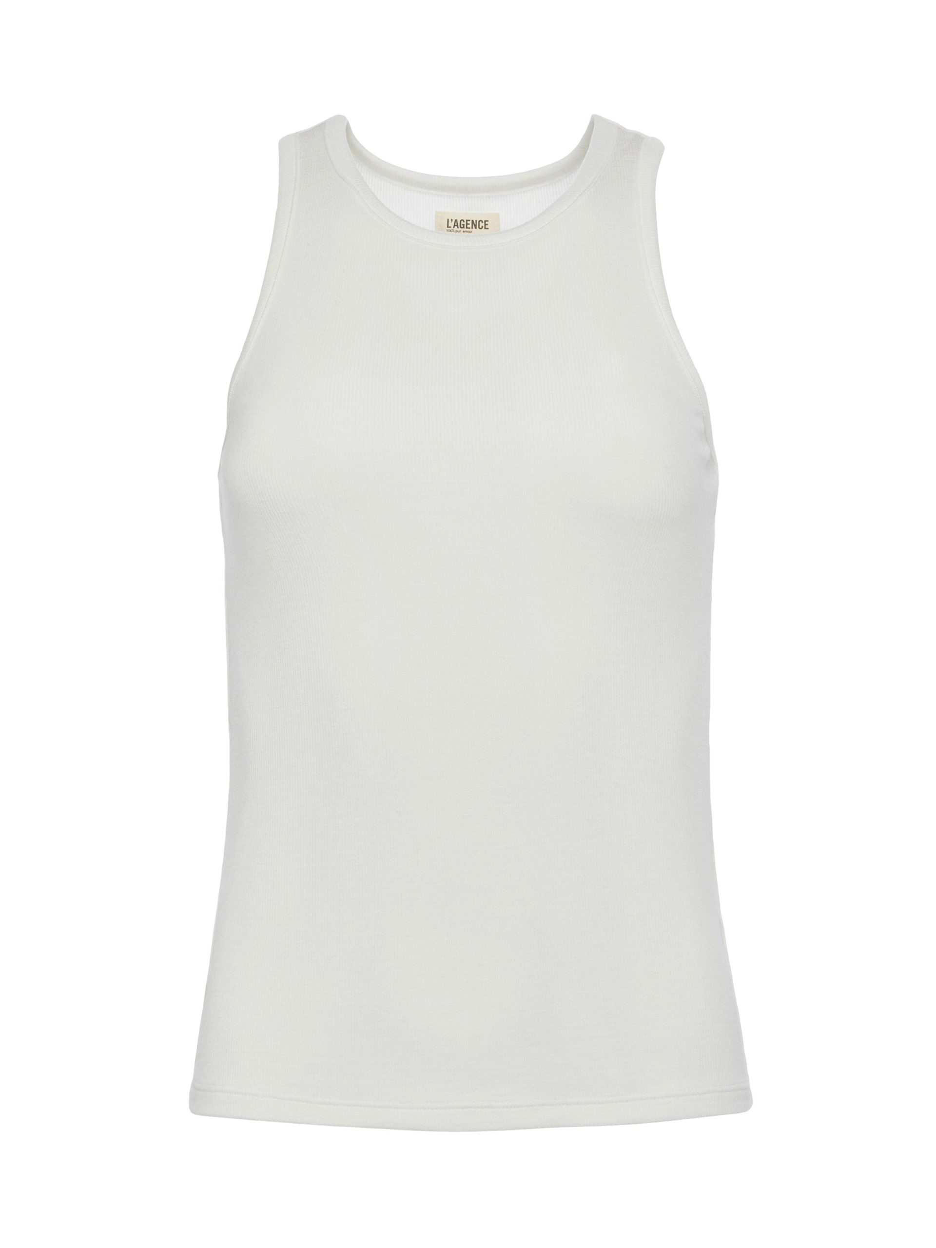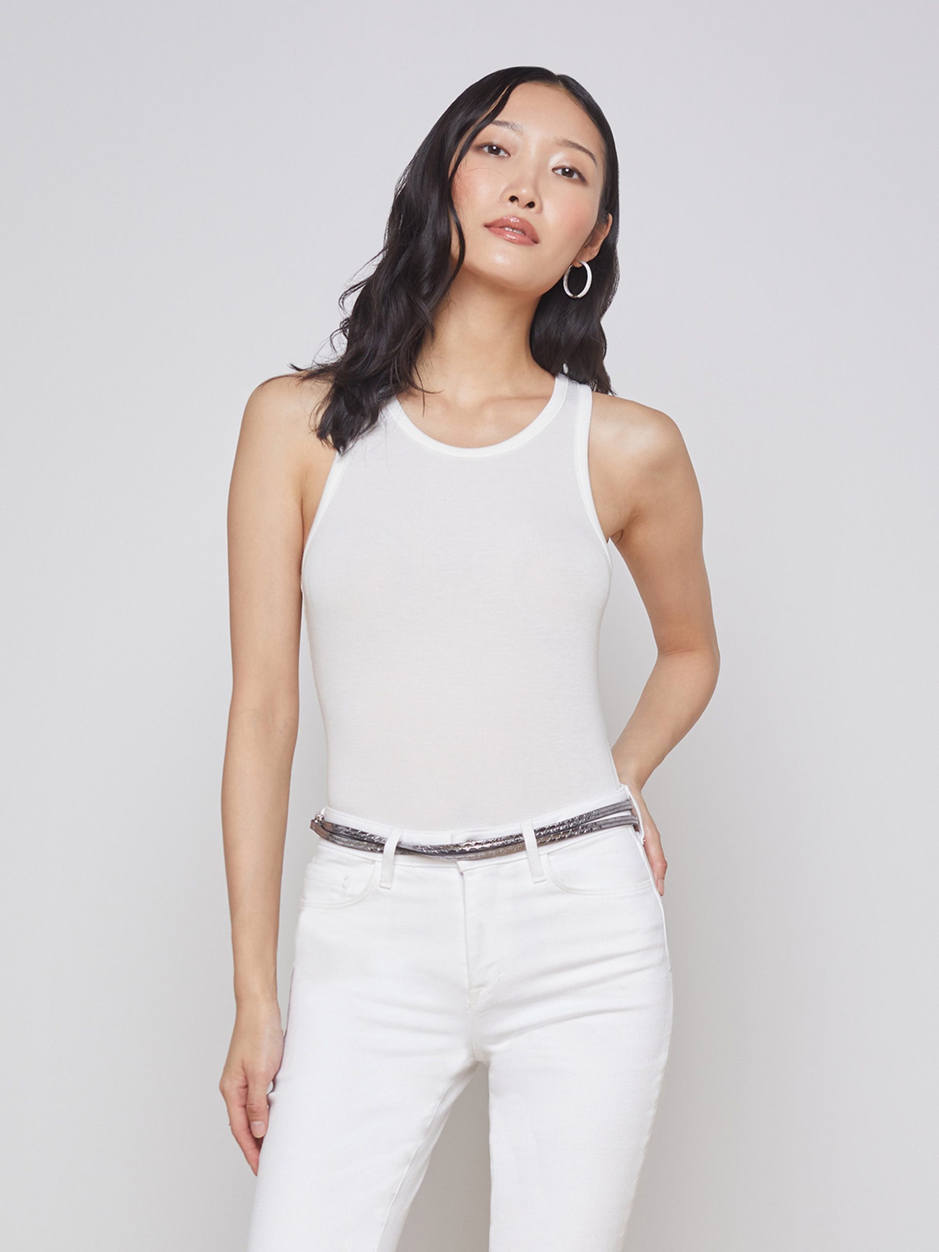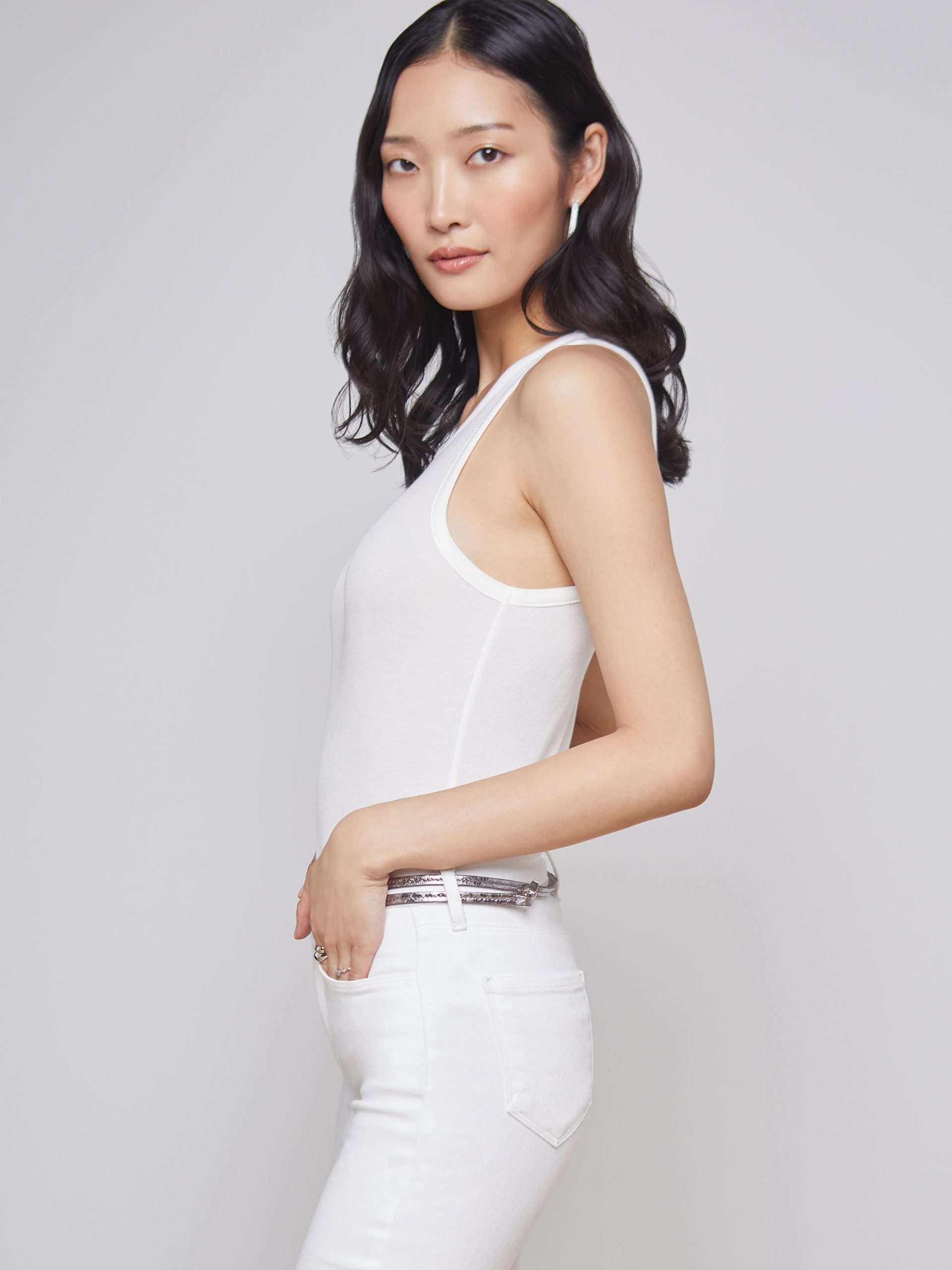 A sleek tank top crafted of ribbed microfiber modal in pure white. Effortless, slim-fit style hugs the body softly and includes sports-inspired cutaway armholes and crew neck. A wardrobe essential, style is perfect on its own or as a base piece for layered looks. Style No. 5683MMS-WHIT