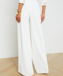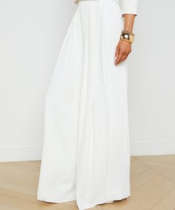 The Nova pant in ivory is a L’AGENCE core essential. Sharp pleats add a tailored crispness to this wide-leg trouser, defined by beautiful flow and movement.
