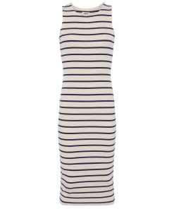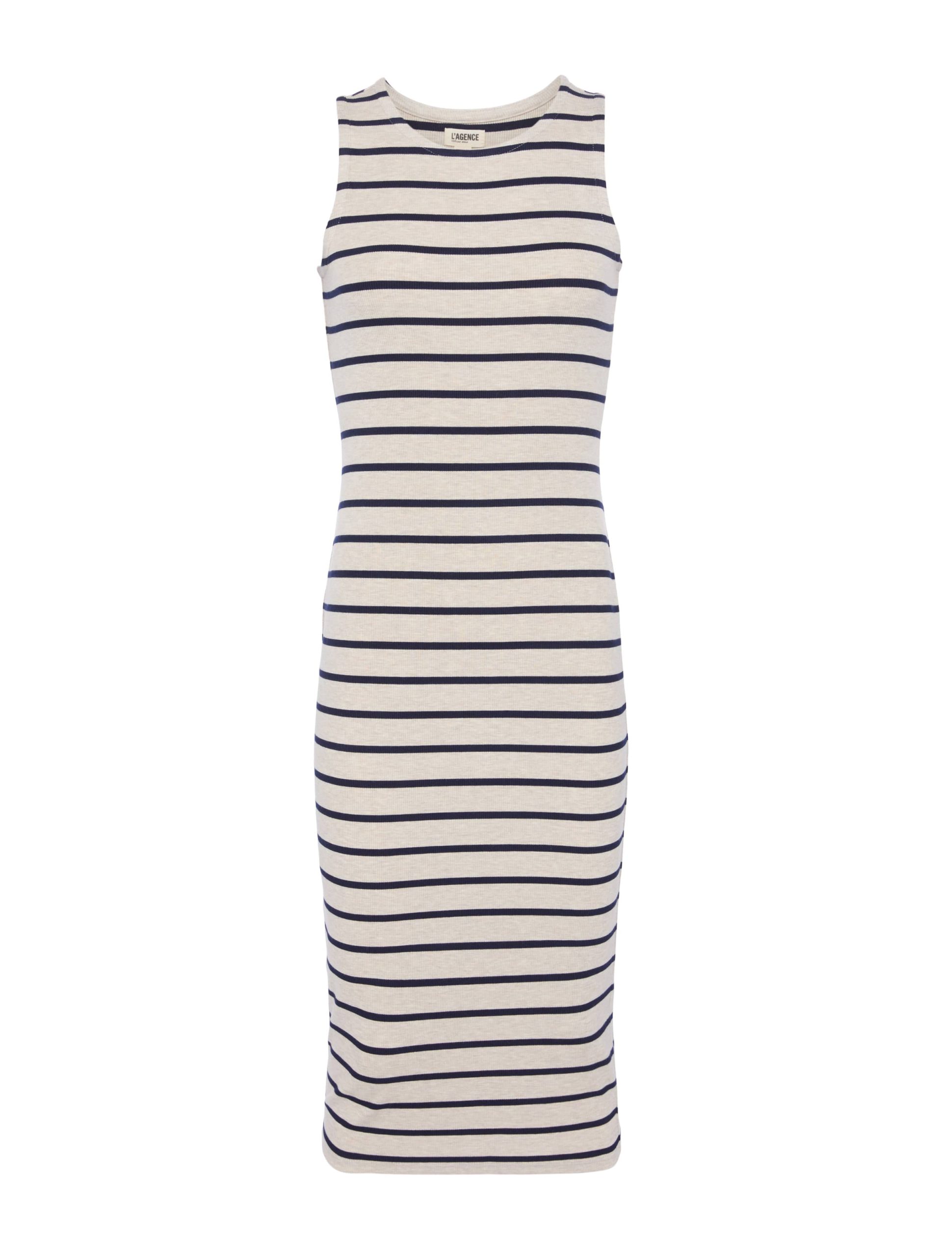 Our super soft, endlessly versatile tank midi dress designed with a flattering racerback fit. Now in a neutral hue with navy stripes.