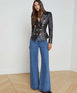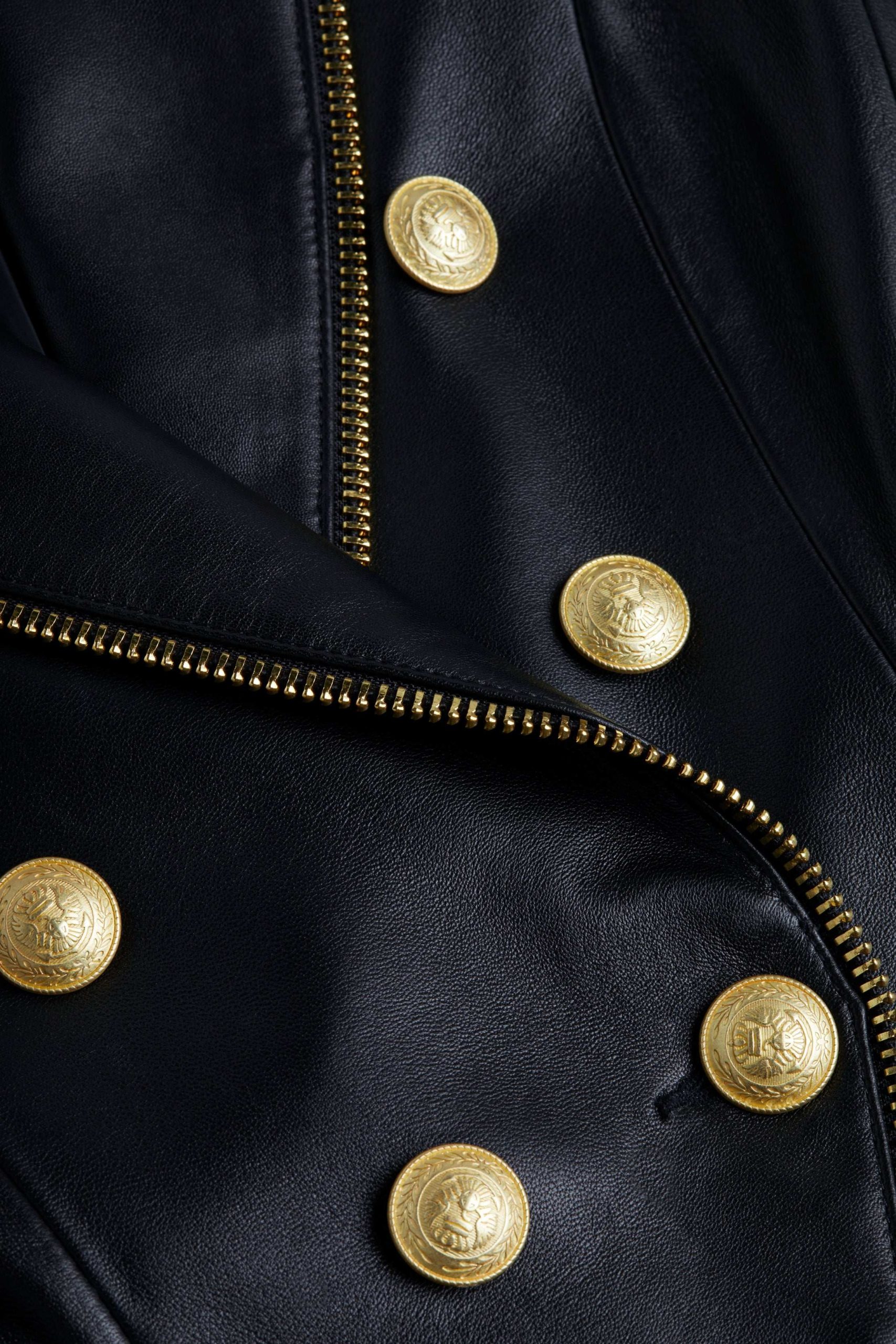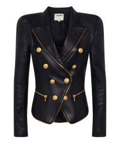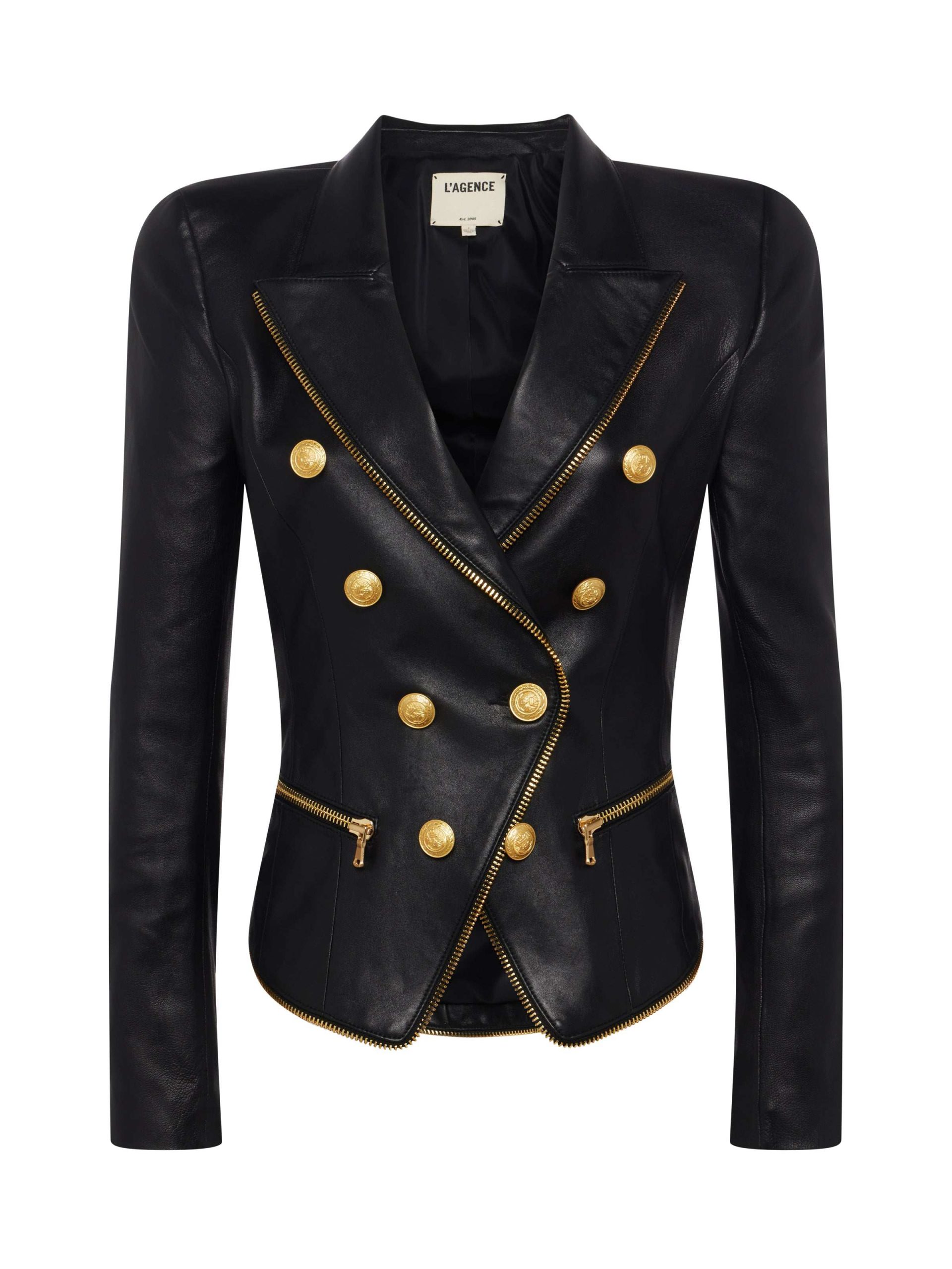 A feminine leather jacket with edgy statement hardware and a super sculpted, flattering fit.