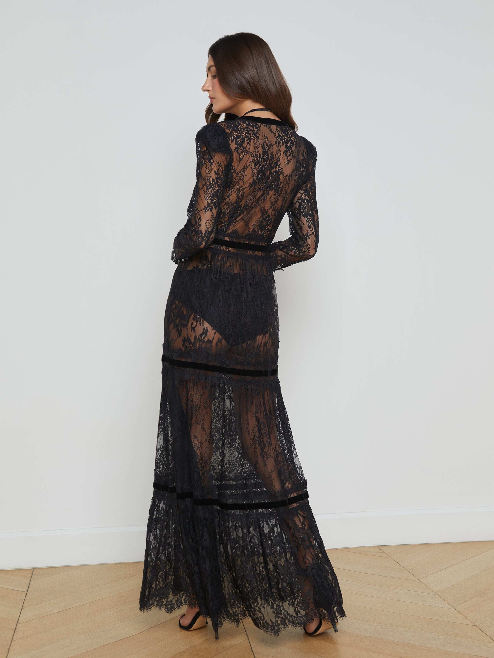 A head-turning spin on a classic vintage style, the Poe combines tiers of sheer lace with luxurious velvet trim. Wear it on its own or layer over a camisole and pant.