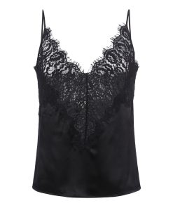 Sheer lace adds a subtle lingerie-inspired appeal to our signature silk camisole in a versatile black.