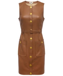 Meet the Ronin dress, crafted from supple stretch vegan leather that fits like a glove and wears like a dream. Now back in soft cognac.